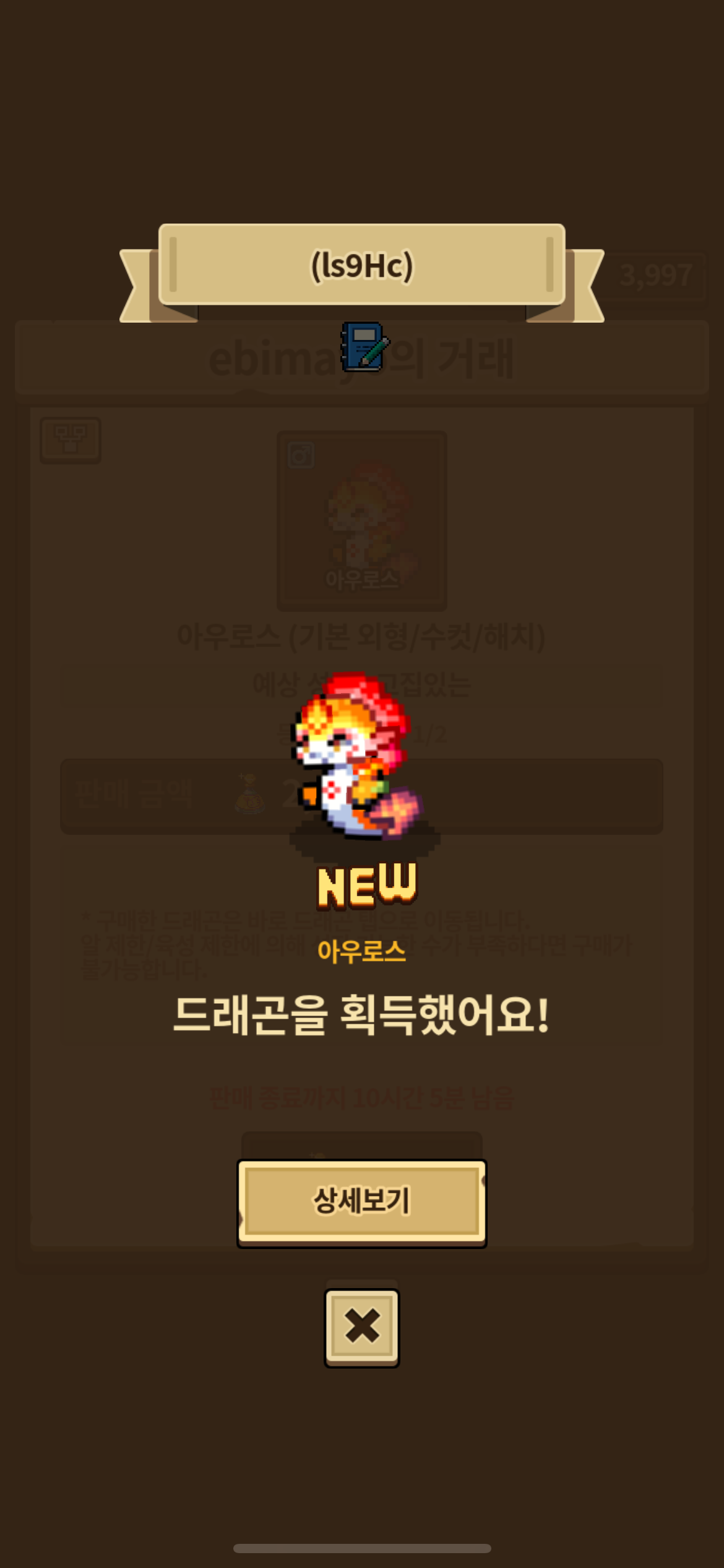 거래소에 아우로스를 데려오게 되었습니다