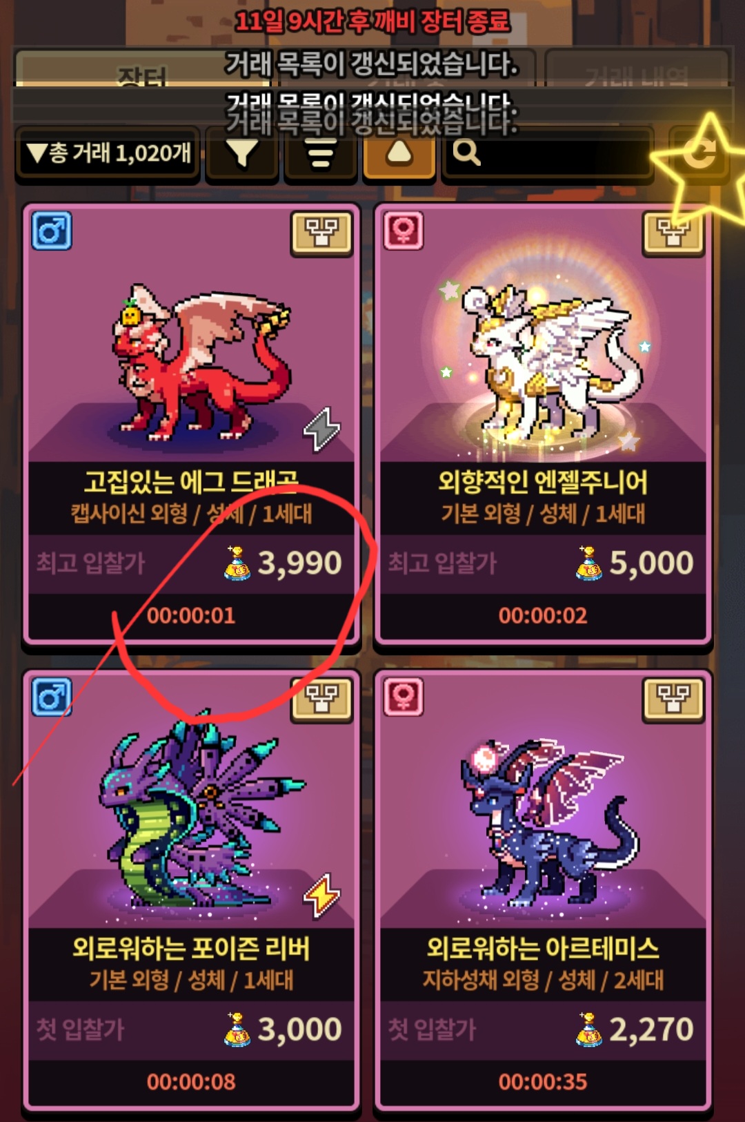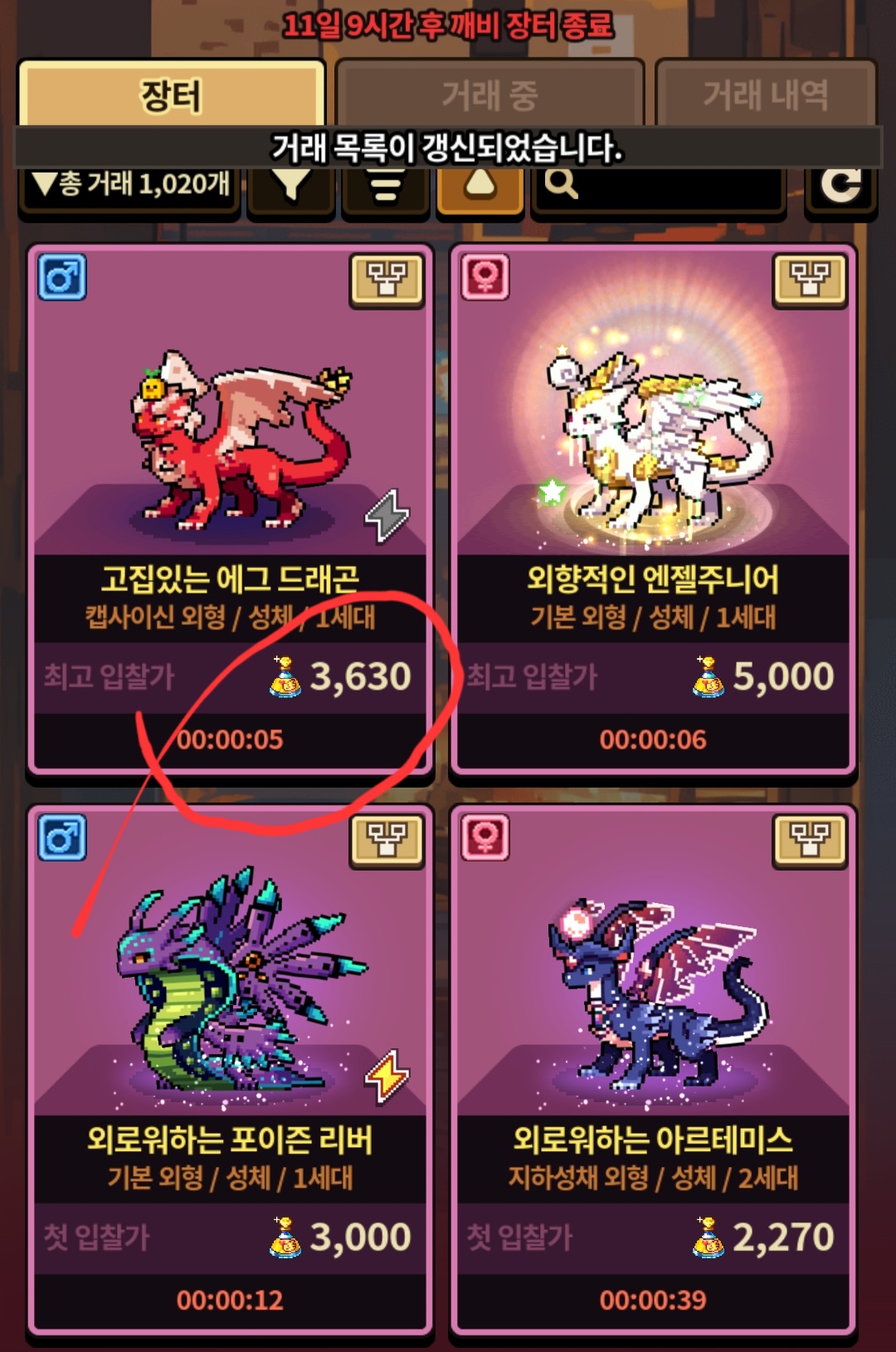 입찰이 끝나기 약 1초 전에 입찰가가 바뀌기 때문