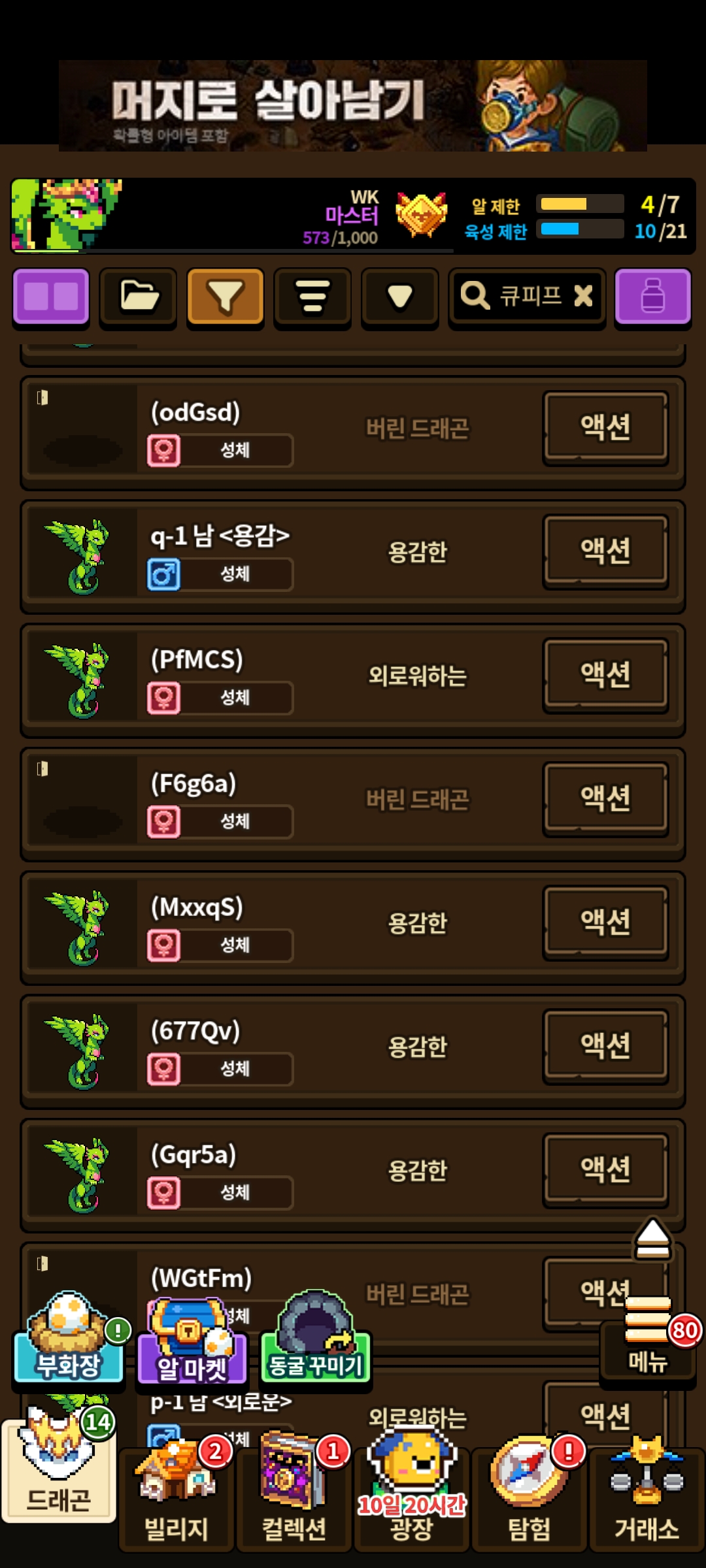 이름 없는 암컷 큐피프들 다 승천 시켰습니당.. 한마리에 1000드링 정도로 무매했던 애들인데 돈 아깝네여,, 심지어 방금 깐 애도 암컷 ㅋㅋㅋㅋㅋ