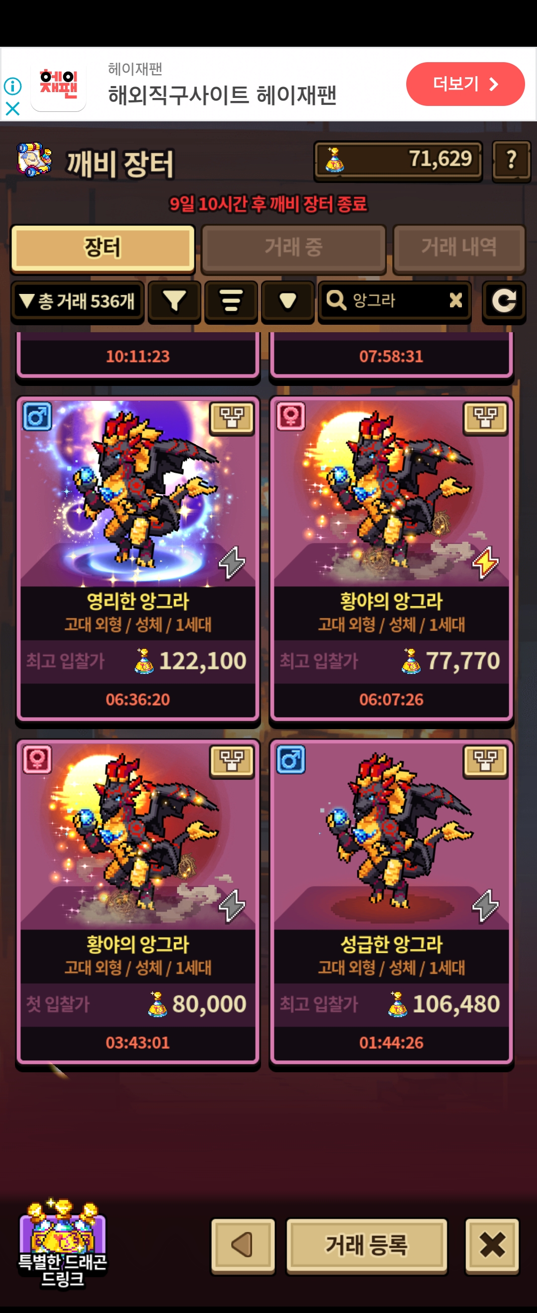 엉엉 어떻게 맨날 조금씩 부족해.. 심연 한마리 더 뽑아야겠구나.. 혹시 여러분이 소망하는 아이의 거래 진행정도는 어떻게 되시나요.. ;(