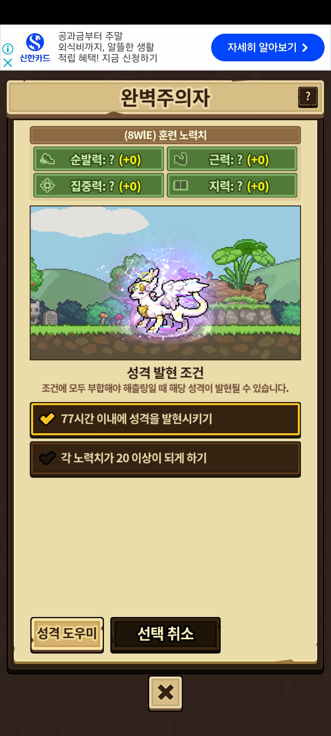 가장 좋은 방법은 돌보기를 최대한 적게 하고 가장 높은 능력치를 가장 낮게 만들 정도로 훈련을 시켜주는 겁니다.