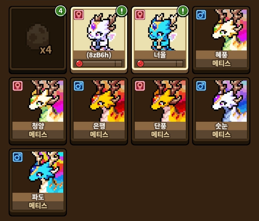 방금 생각나서 교배한 결과 겨우 메티스 순2세대 탈출했습니다. 이제 순5까지 얼마 안남았네요. 아싸 6월 전엔 되려나…