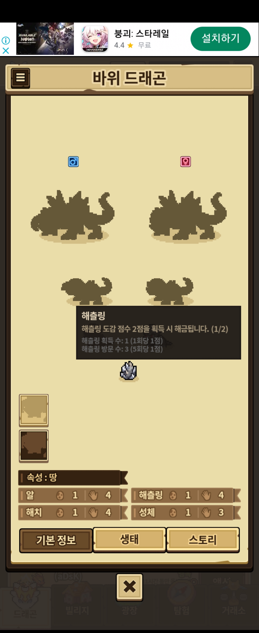 해츨링 방문 수가 3이라서 그런가요? 2번 더 채우면 되나요?