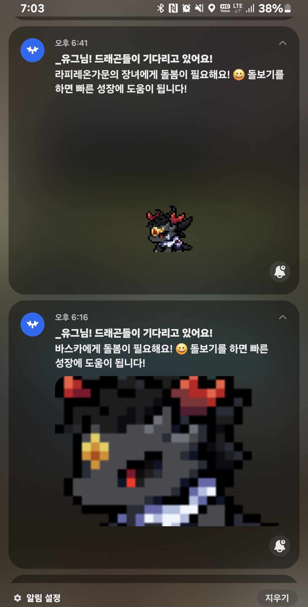 얘네 알림창에 뜬 크기차이 어째… 큐ㅠㅠ
