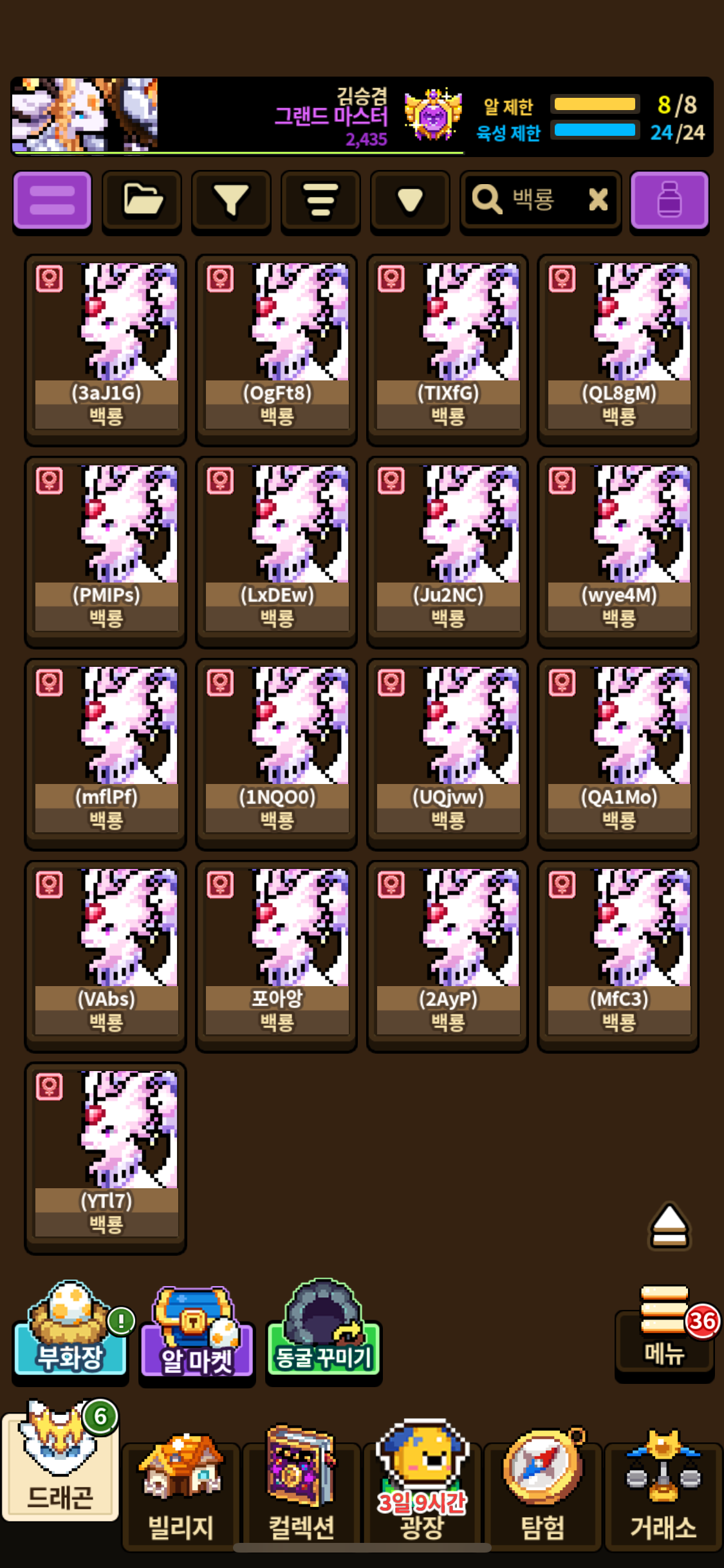 두녀석 빼고는 전부 1세대라서 11일 뒤에 일주년 백룡 받으면 완성이네요
