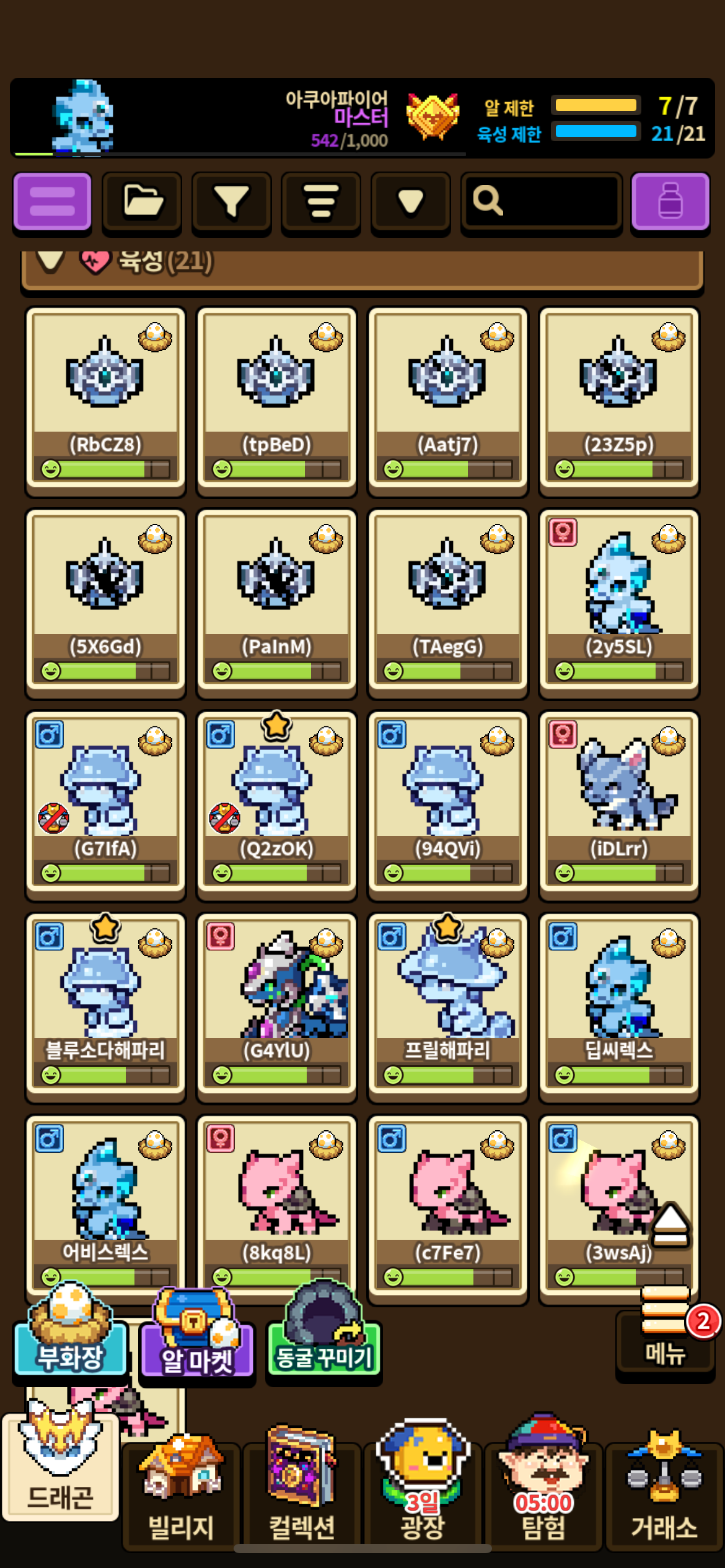 스터드와 딥씨렉스는 골고루 잘나오는데 아우렐리아만 수컷이 나오네요