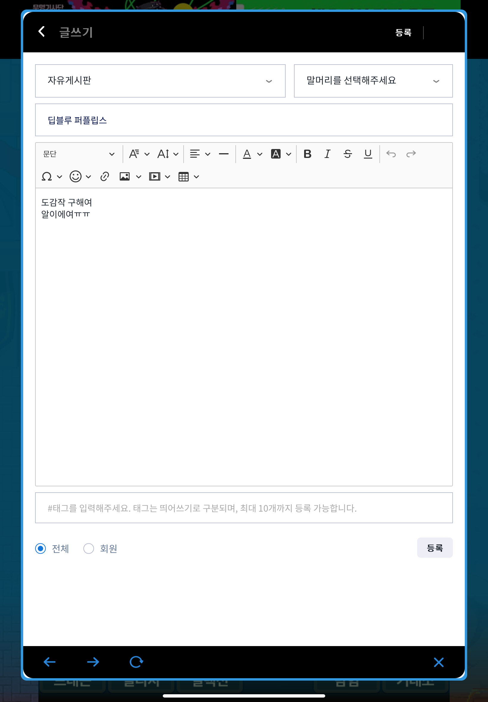 자유게시판 끌올 나는초보 2024-04-22 04:03 82 0 공유 공유 URL 복사 페이스북 왓츠앱 카카오톡 라인 레딧 닫기 공유 0 1 댓글 0 삭제 이미지첨부 0/3000 등록
