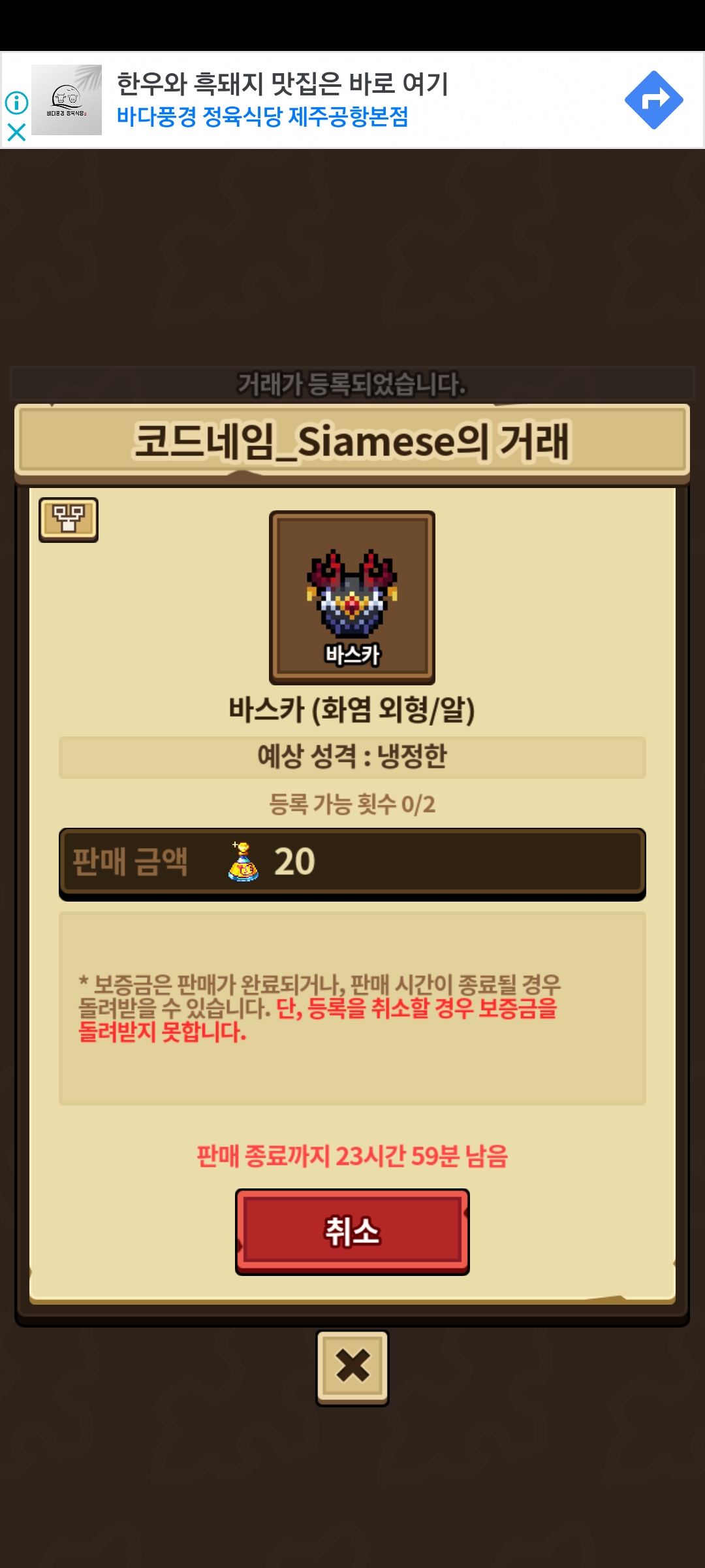 거래소에서 데스리버순2를 화염부모 순2 바스카랑교환했는데…드링크 확인을 안하셨더리고요? 그래서 해봤는데…… 특별외형이! ㅠㅠ