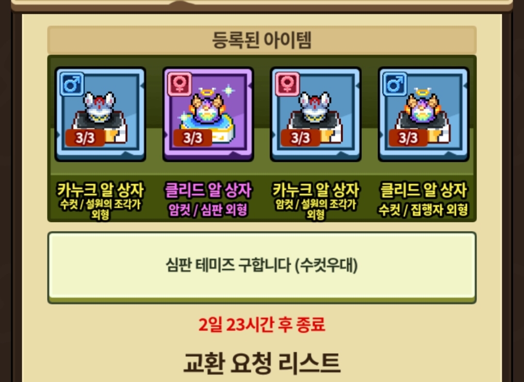 자유게시판 심판클리드+일반클리드 한쌍+@ 로 심판 테미즈 구합니다 용용죽것지 2024-04-23 06:06 105 0 공유 공유 URL 복사 페이스북 왓츠앱 카카오톡 라인 레딧 닫기 공유 자게 죄송, 댓글 주세요 2 0 댓글 0 삭제 이미지첨부 0/3000 등록