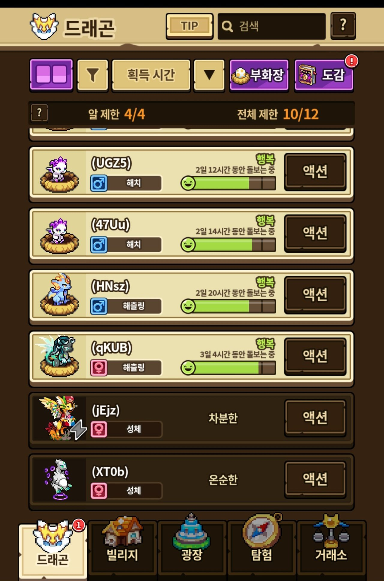 게임은 핸드폰과 패드로 두개의 계정을 통해 즐기고 있는데요. 애플칙을 노리다가 파워 드래곤만 본의아니게 세마리가 생겨서 (한마리는 라파엘이랑 교환했습니다! 방랑상인에 운좋게 샤크곤이 딱 떠줘서 다행이었어요 ㅎㅎ) 이게 맞나… 라는 생각도 했었네요. 제가 땅타입하고 연이 있나 봅니다… 열심히 번식시켜서 교환도 하고 나눔도 하면서 이 사대신룡 부족사태 개선에 이바지하고자 노력해보겠습니다.