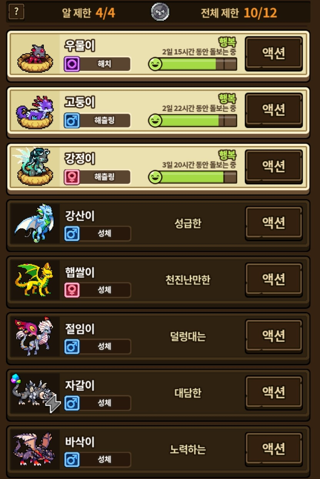 좋아했던 웹펫게임이 섭종(ㅠㅠ)을 한 이후로, 이런류의 한국어 게임을 애타게 찾고 있었는데 정말 즐겁게 하고 있습니다. 현생이 바빠 게임에 시간을 오래 투자하지 못하는 상황이지만 방치형류의 타워디펜스라던지 코인 모으기라던지 그런 게임은 좋아하지 않는데. 이런 좋게 말하면 관상, 나쁘게 말하면 방치형 육성 컨텐츠는 저한텐 다마고치같은 게임을 좋아해서 그런지 정말 잘 맞더라고요. ㅍㄹㅇㅌ ㄹㅇㅈ 같은 게임처럼 완전 나만의 디자인의 드래곤! 은 어렵지만 유저끼리 공략도 공유 가능하고. 포럼의 분위기도 화기애애하고 다정해서 좋아요. 이런 분위기 오래갔으면…