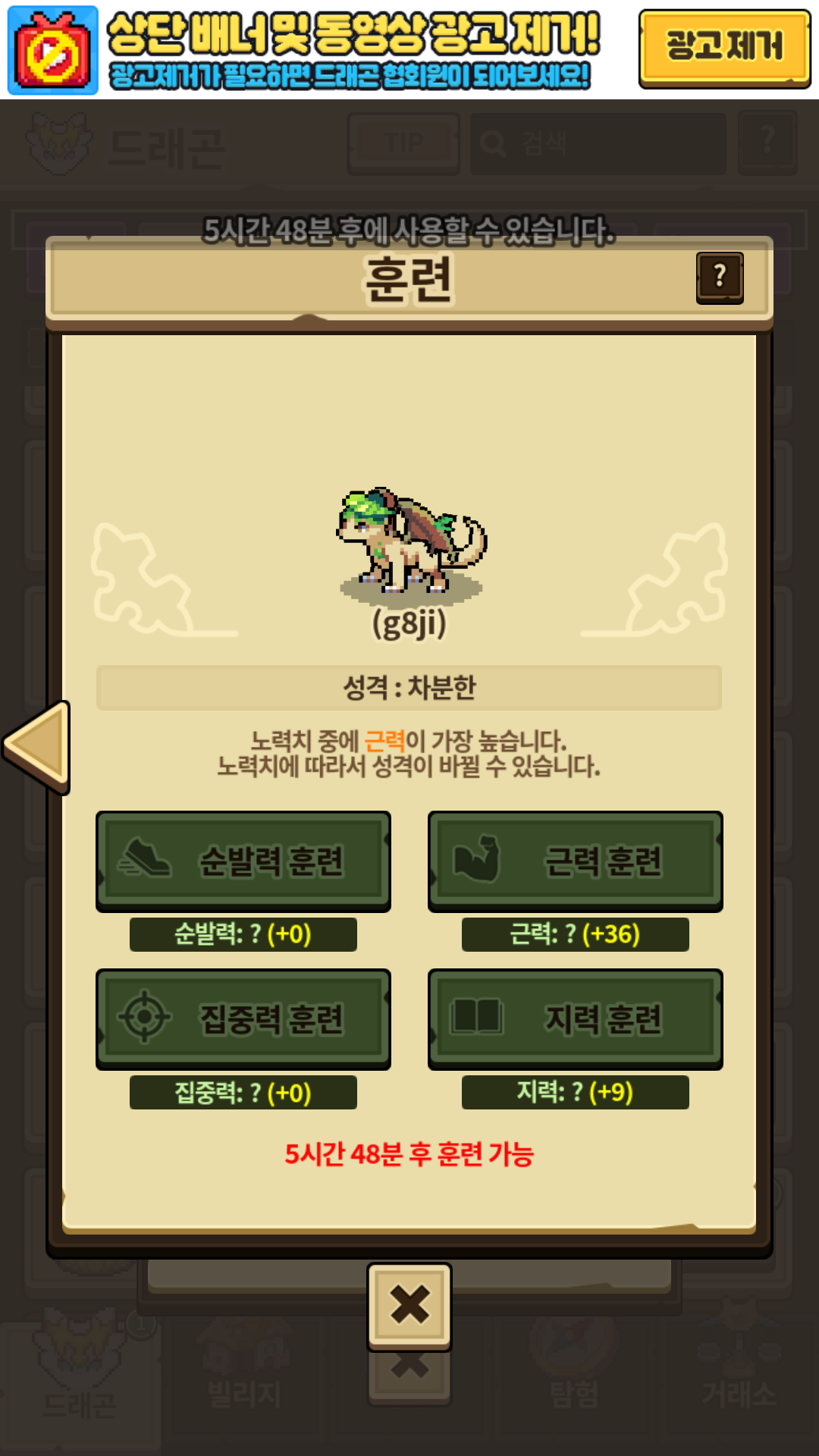 이때 성격이 바뀌는 경우가 대부분입니다만, 지금 올린 사진과 같이 근력 훈련을 4번 모두 성공해서 36이나 쌓고, 최고로 만들었음에도 성격이 여전히 차분이네요.