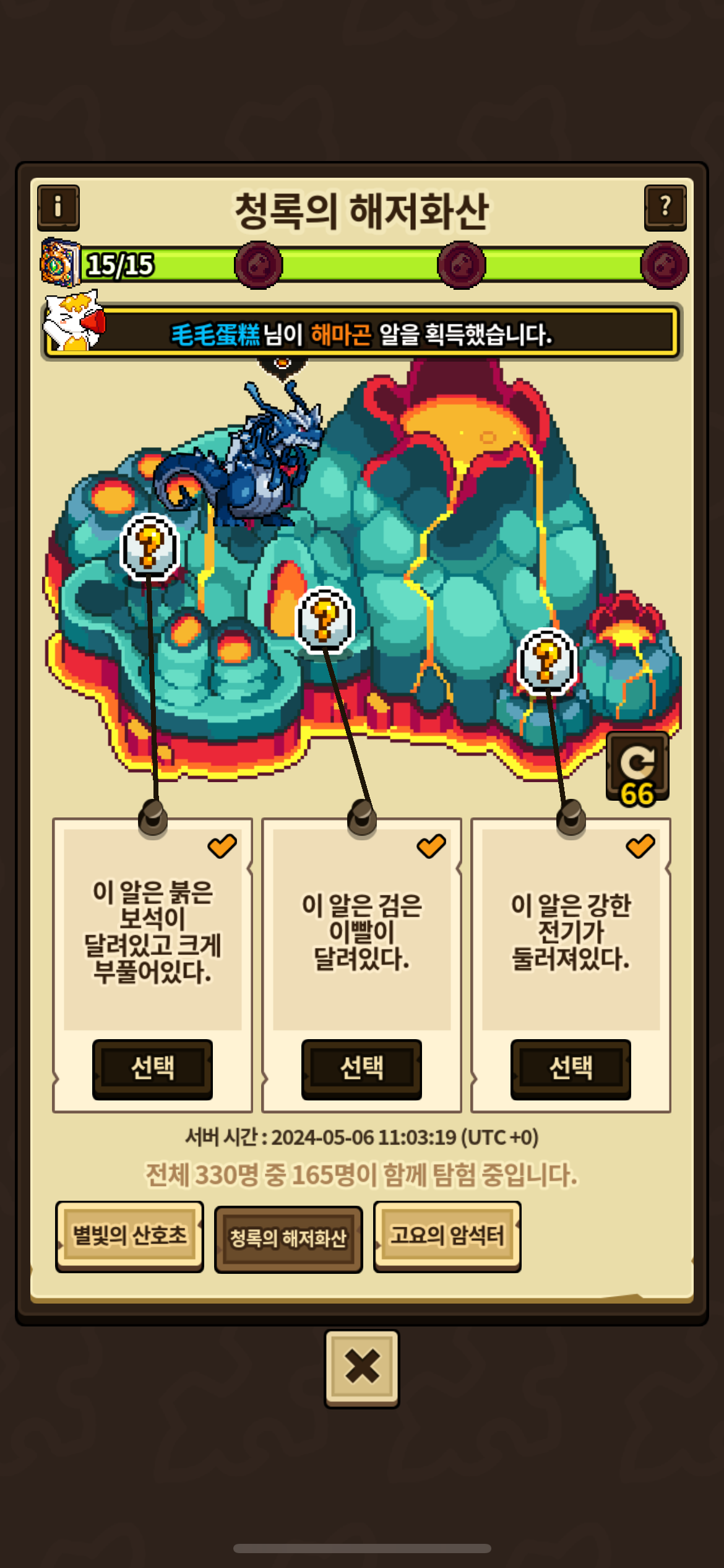 알이 갑자기 사라지는 소용돌이가 일어나다 보니 바토는 포기하고 루스페론이랑 라우아만 줍고 왔네요