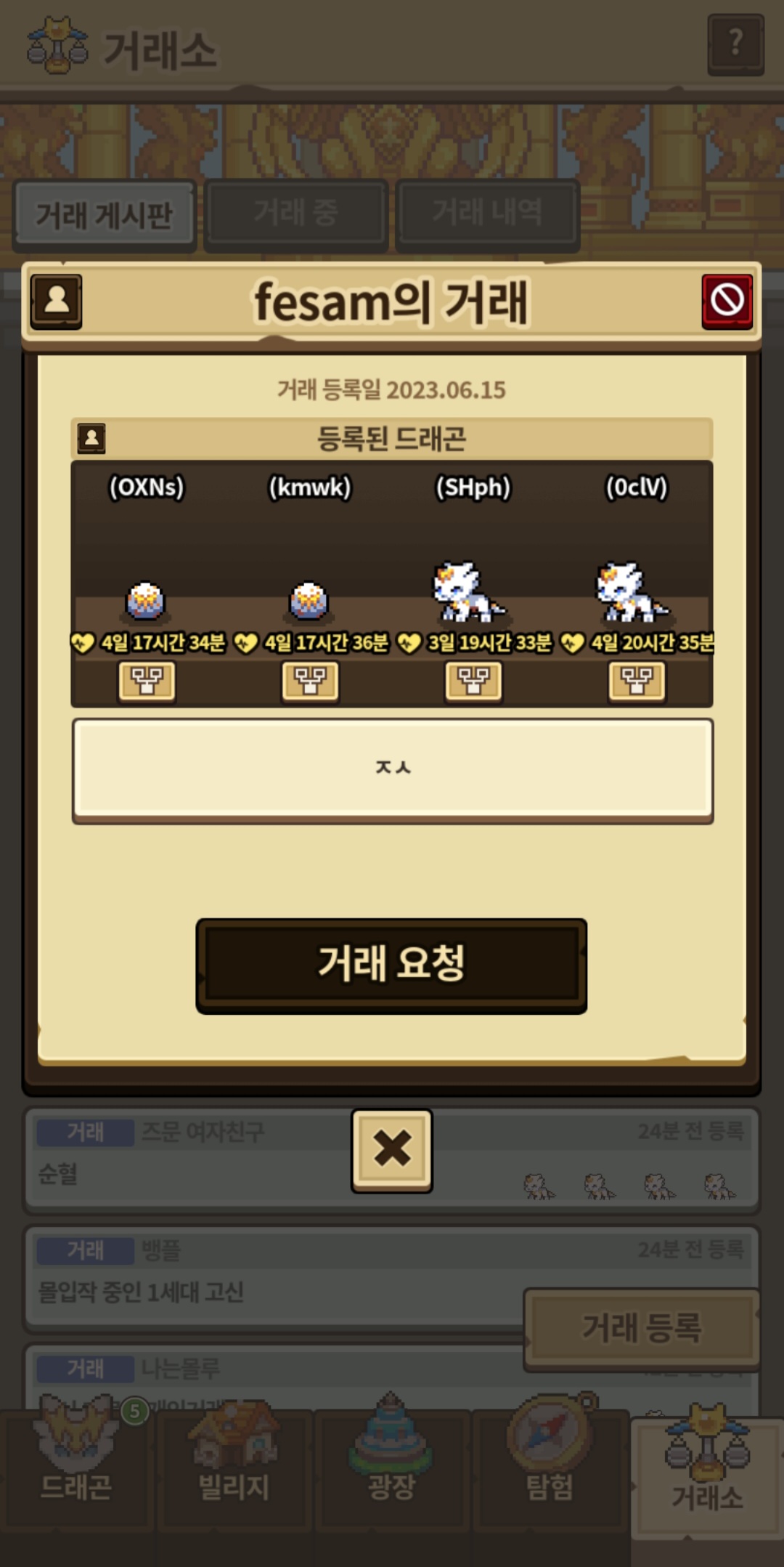 매크로로 고대신룡 1세대 다 빼앗아 먹은 것도 모자라 교배 한 뒤 부계정에 옮겨서 당당히 거래소에 올리는 짓까지 하시네요.