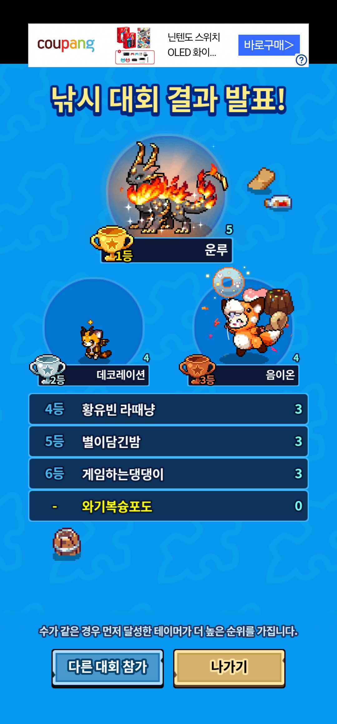 낚시대회 결과는 제가 따로 캡쳐했습니다!