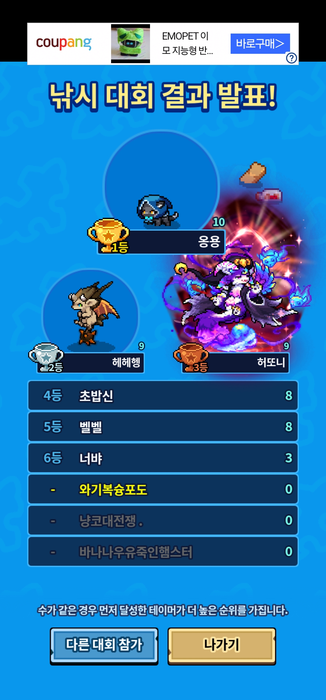 각 대회 당첨자(우승자)를 공개합니다.
