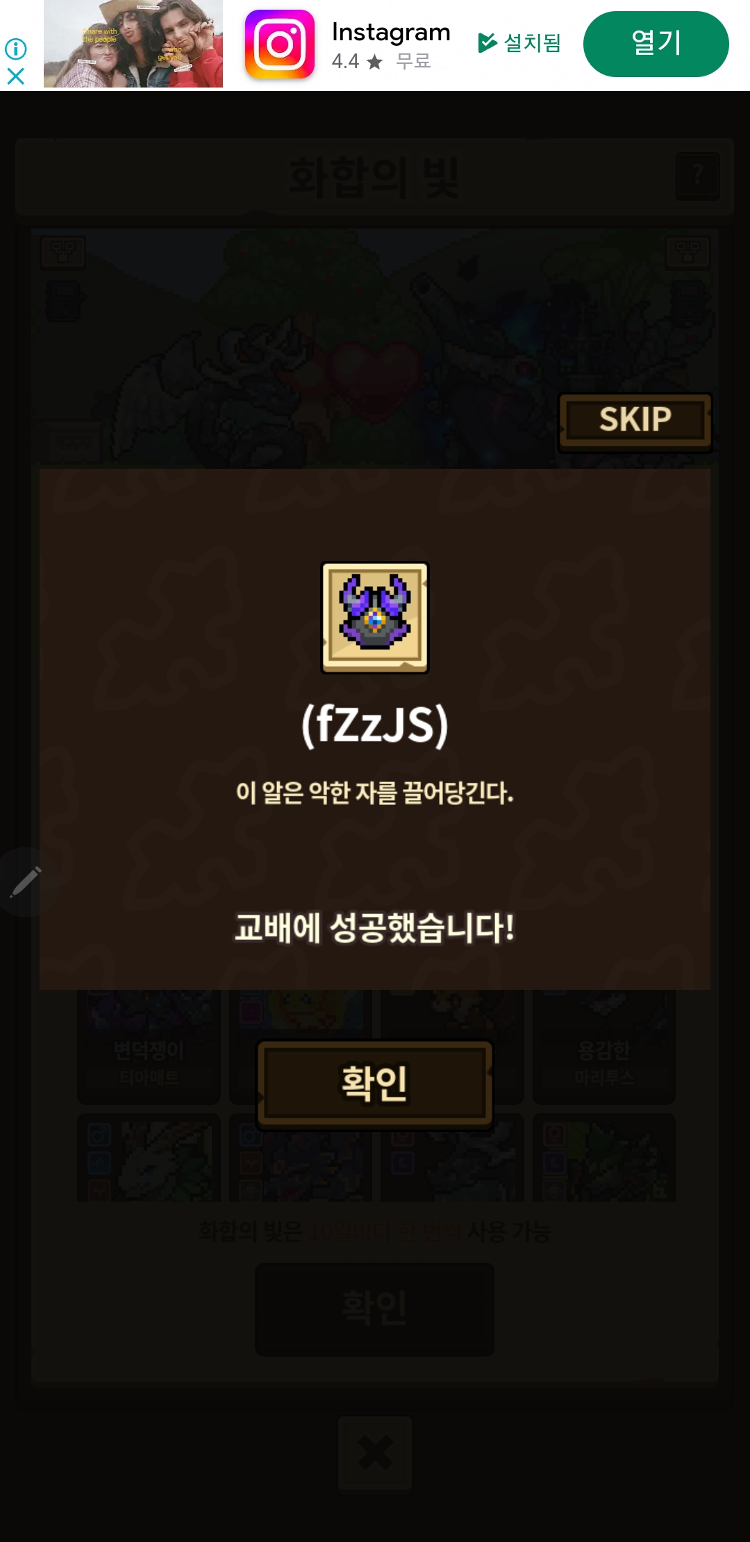 자유게시판 1트만에 카오스 저네르 뽑았다 Dldbwns1128 2024-05-10 16:16 237 7 공유 공유 URL 복사 페이스북 왓츠앱 카카오톡 라인 레딧 닫기 공유 1 1 댓글 7 삭제 이미지첨부 0/3000 등록