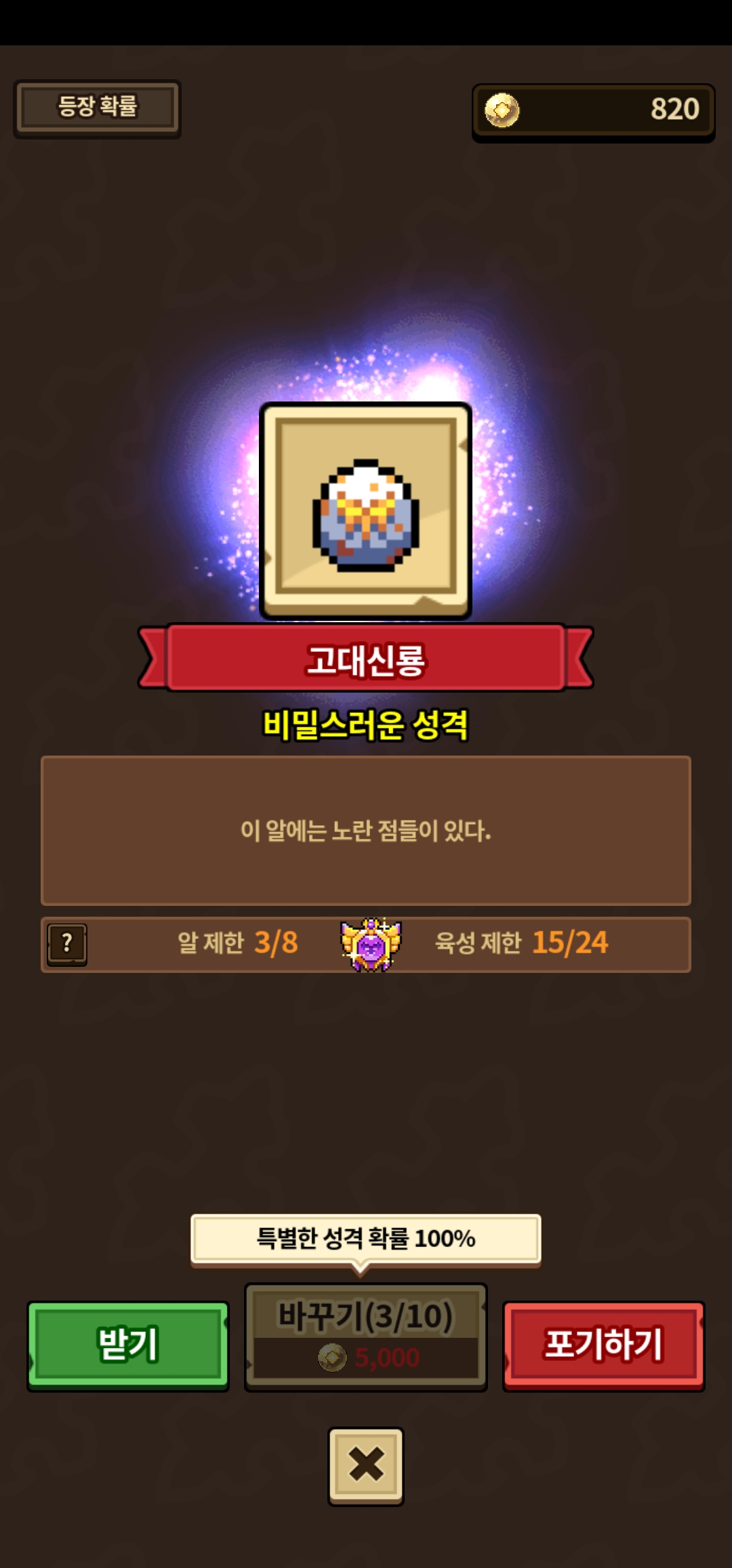 이제 정기 모으고 암컷 하나 구해서 특진 하나 더 해주고 나면 어둠정기는 킵하기로…