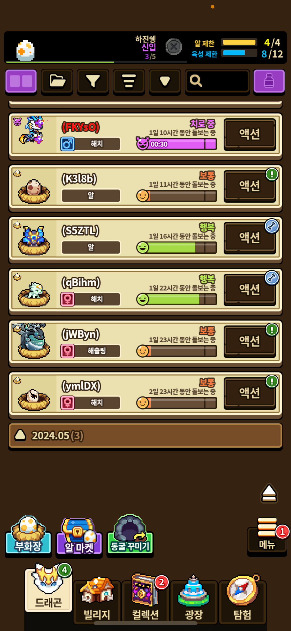 성체 세마리에(리베티포함) 알네개, 해치,해츨링 도합 네개인데 왜 안 열리죵..?