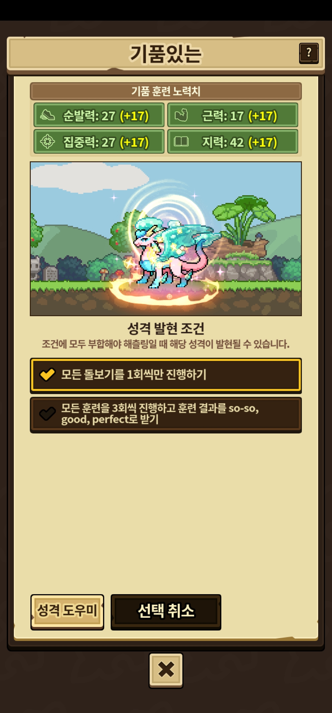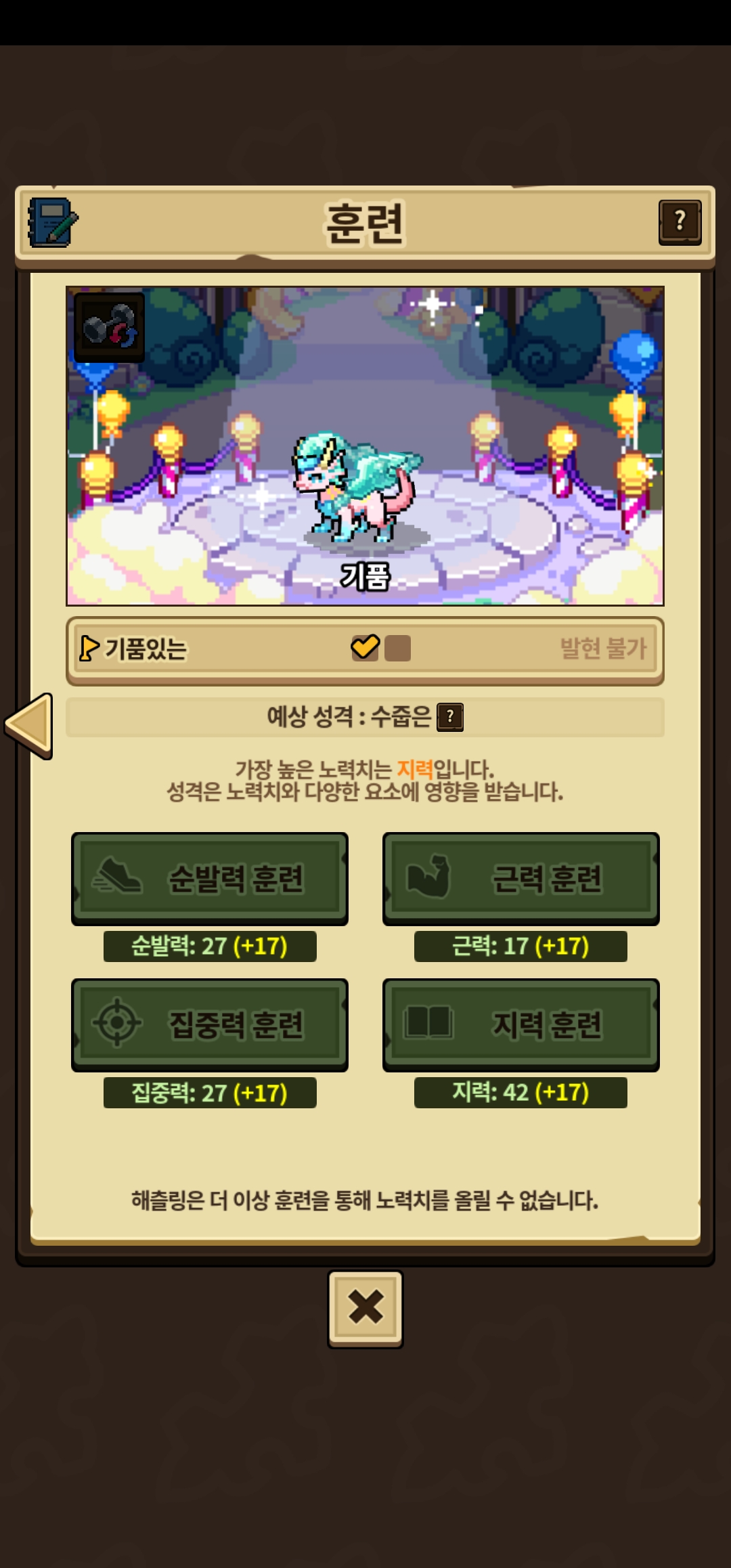 혹시 기품작할때 훈련 조건이 또 있나요?