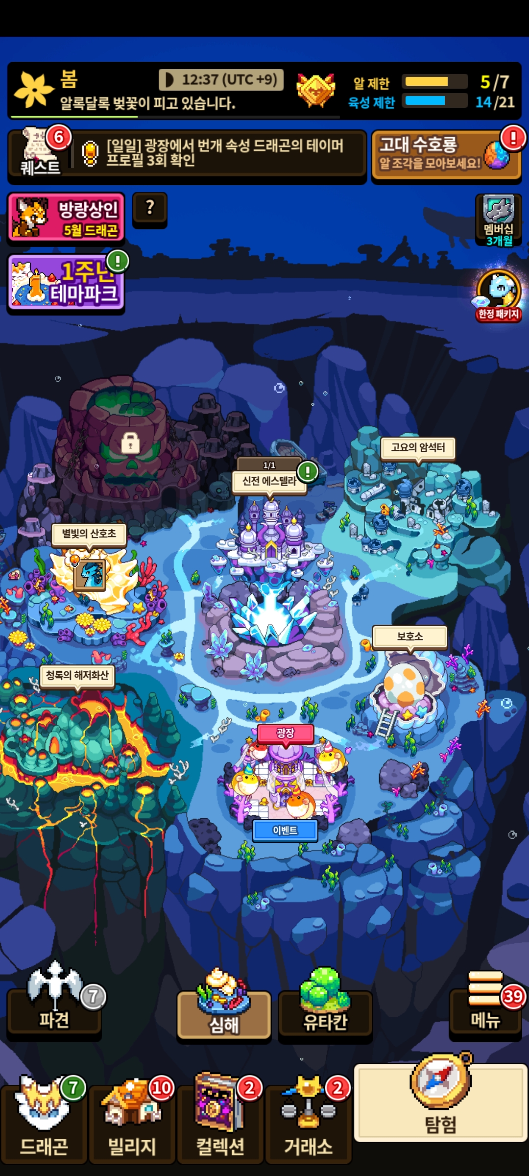 광장가려면 무조건 탐험 거쳐야함+ 광장에선 하단 버튼이 아예 사라져서 바로 용보러가거나 빌리지도 못 봄