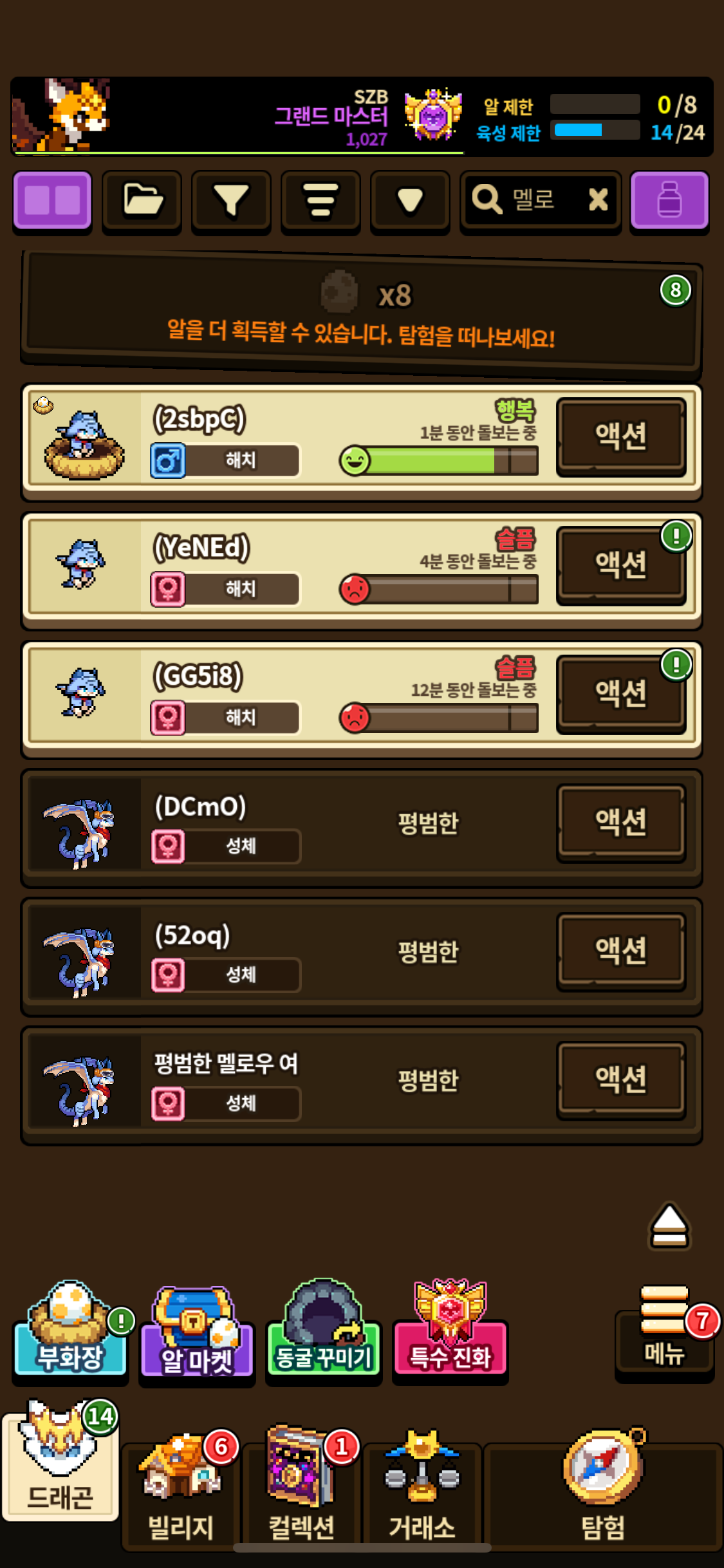 작년에 멜로우가 방랑상인으로 왔던 당시에 수컷을 못얻어서 슬펐는데 이번 이벤트로 다시 얻었어요ㅋㅋ 근데 성비가 저게 맞나요?ㅜㅜ….