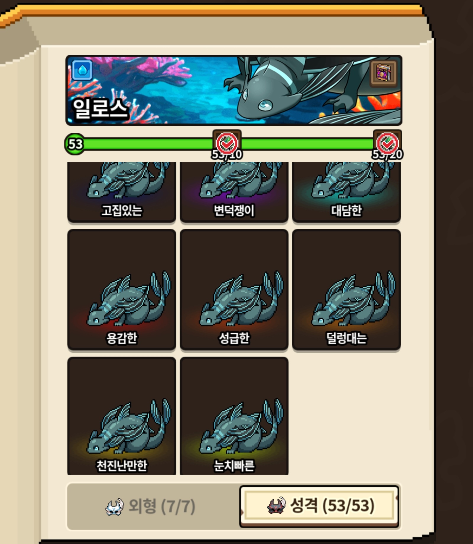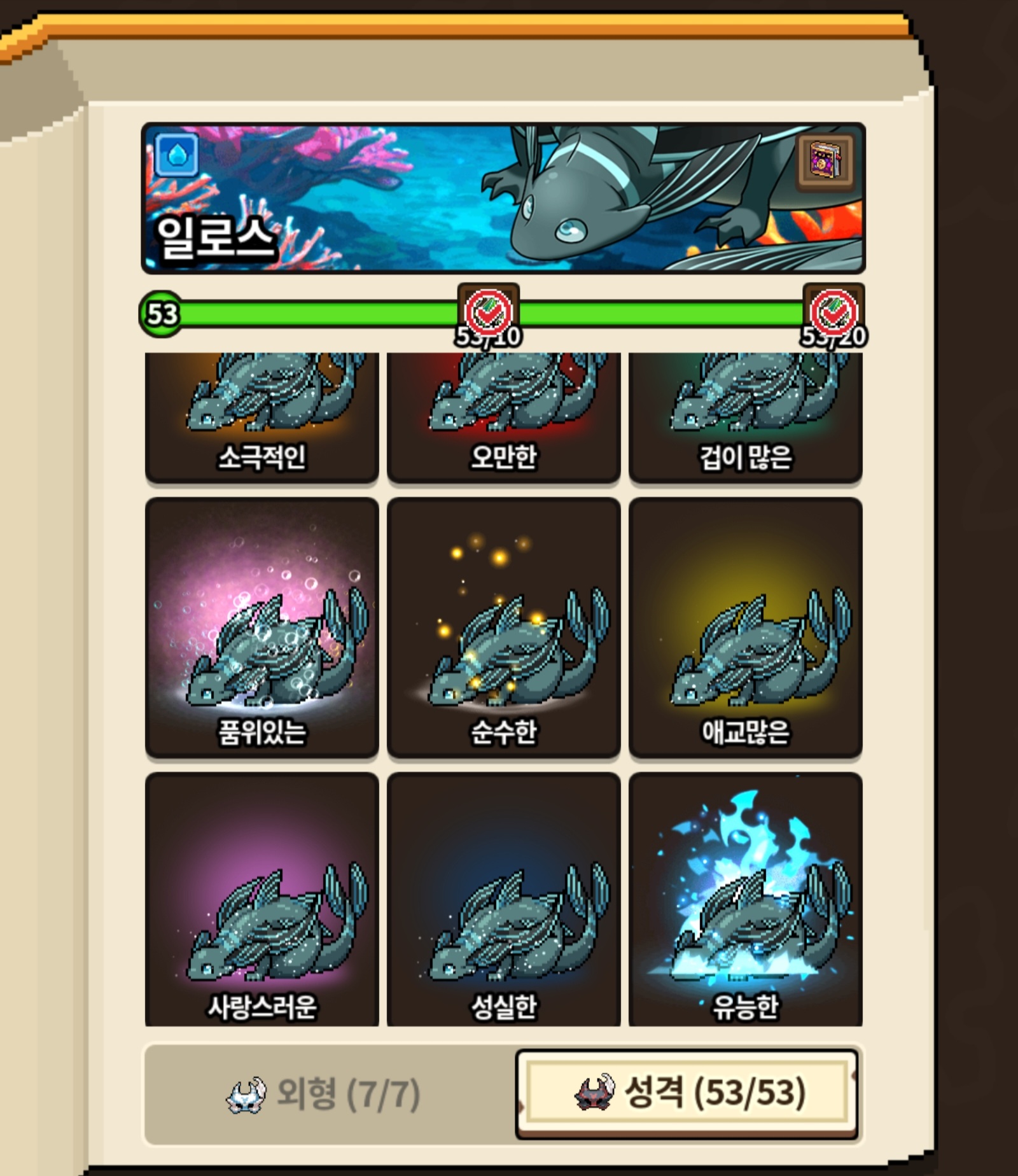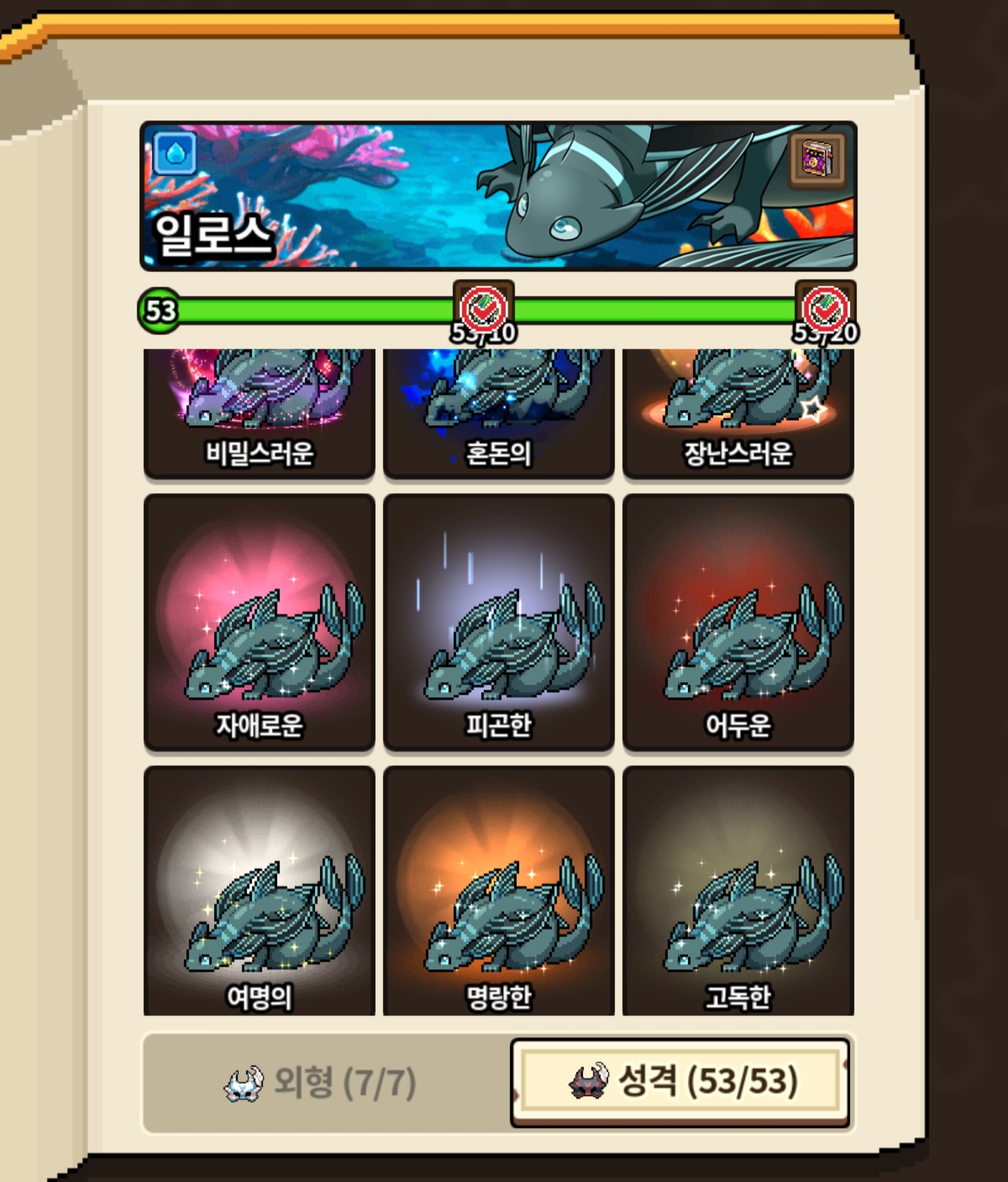 1주일전에 매니아 따놨는데 마침 딱 오늘 일로스 비밀스러운 성격 떠서 성격작까지 완료했습니다~!!