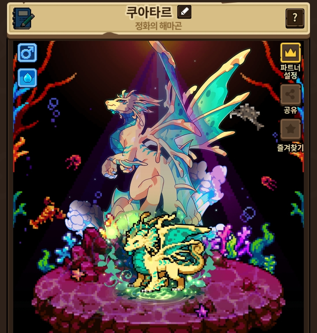 보행 외형 해마곤이 희귀한 모습이라길래 기쁜 마음으로 정화 성격 발라줬습니다.