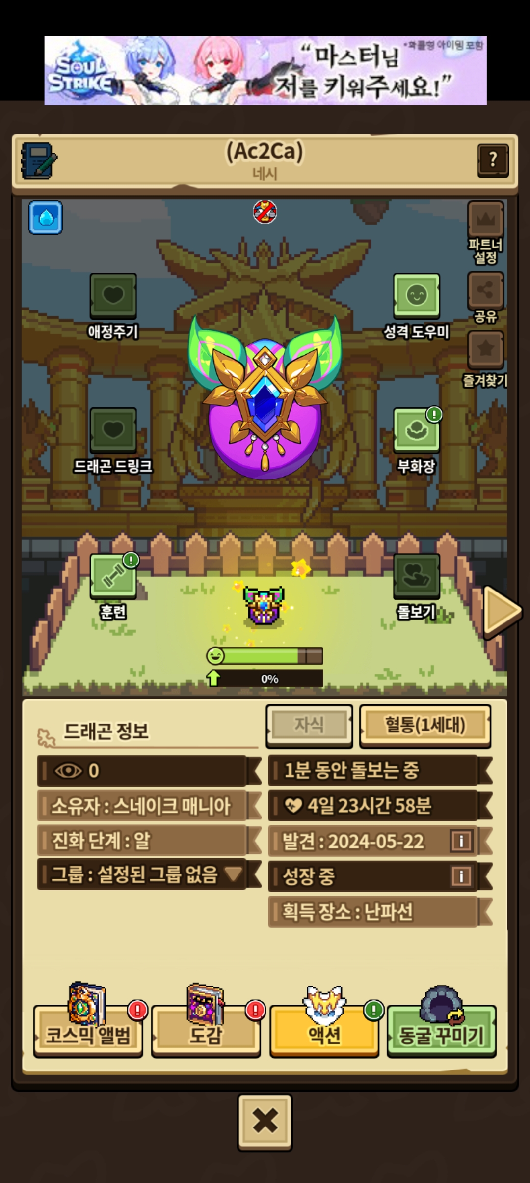 그냥 서펀트만 키우고 싶은데 이런거를 성체 키웠다고 튜토에서 강제로 줍게 하넹소 차라리 자유롭게 줍고 빠른성장 주면 얼마나 좋을까..
