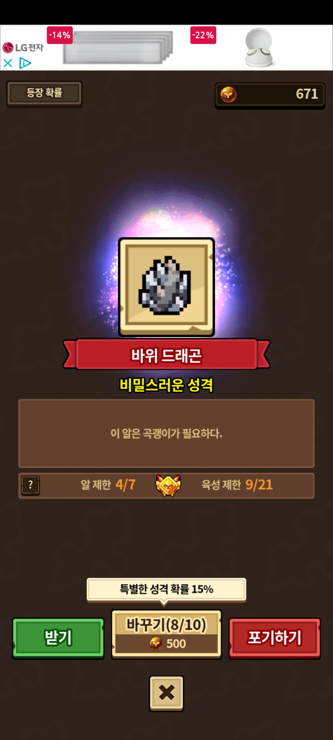 비밀성격이 바위한테 떴는데 팔기엔 사갈 사람이 있을까 싶고 제가 키우기엔 싫은데 포기할까요?.. 아까워서 질문해봐요.