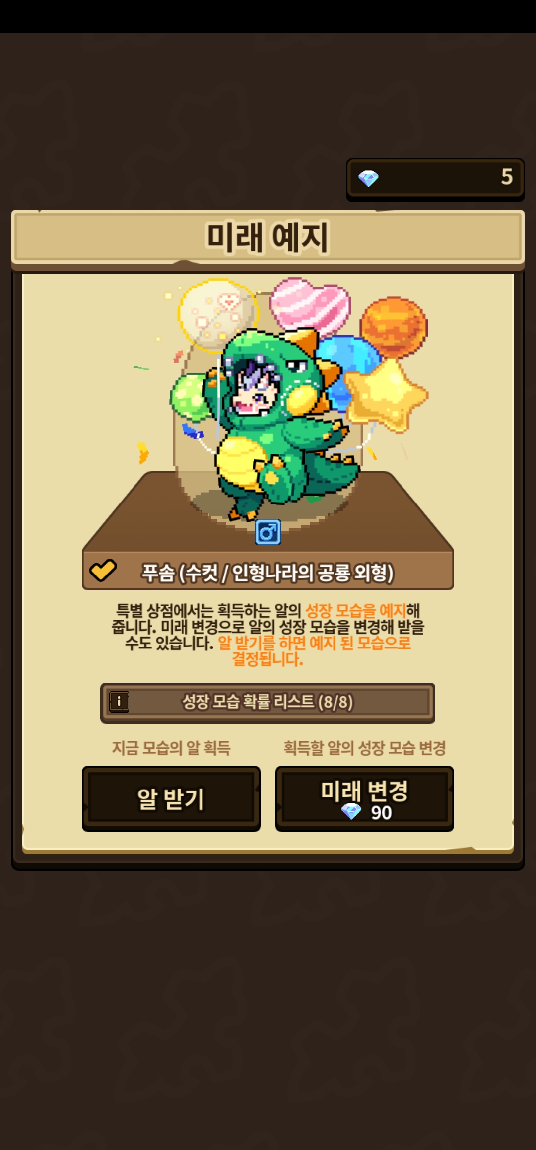 출석 보상 푸솜은 공룡 수컷 나왔네요…