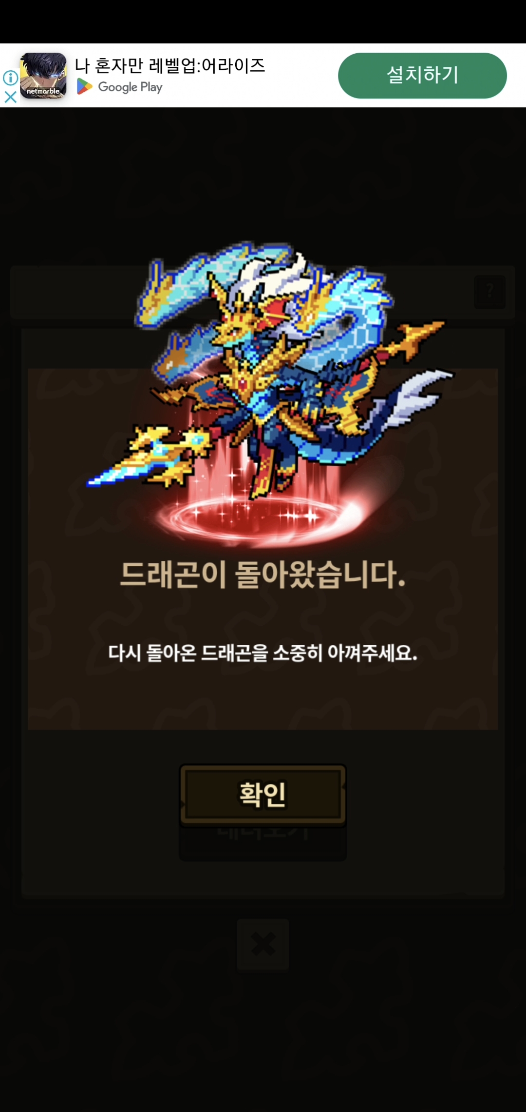 나머지 2마리는 기존 폼이라도 드래곤 창으로 돌아와 총 3마리의 레그나토르를 소유하게 되었네요~ 아마 이 이상 도전은 안할 것 같아요ㅎㅎ