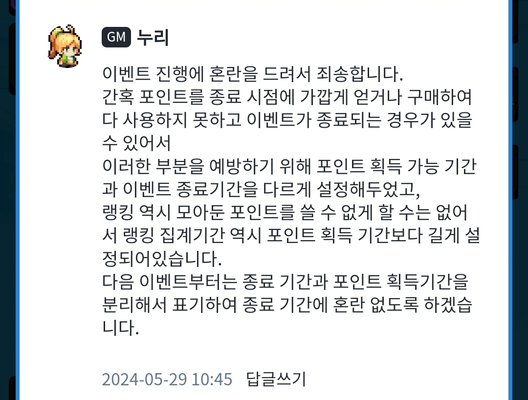신규 유저들 같은 경우 이벤트 기간을 즐기다가도 이런 시스템으로 고정 되어있을 줄은 모르고