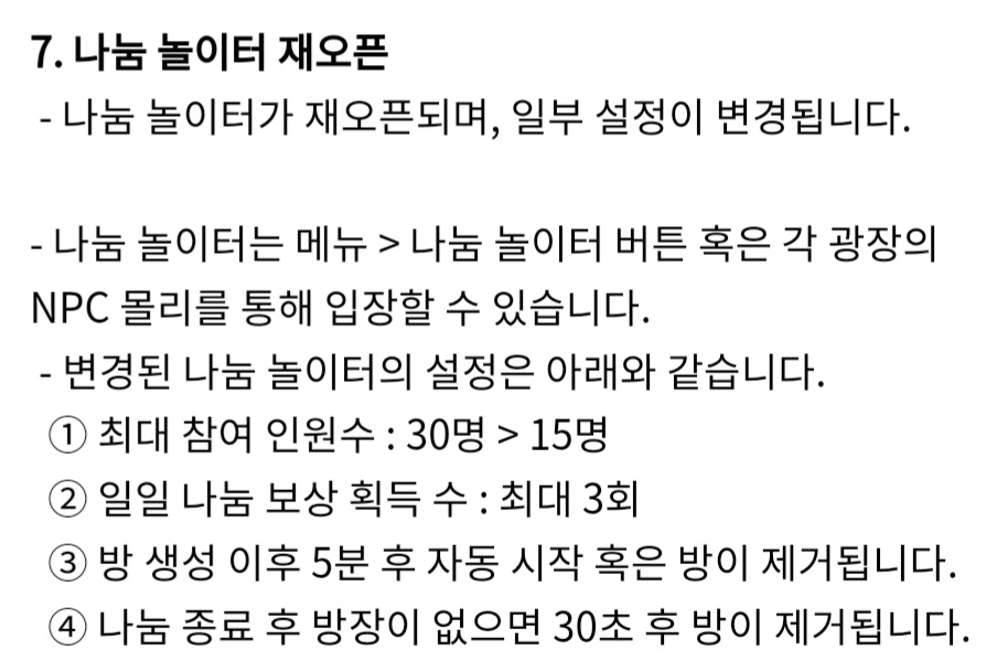 참여 가능 정원이 줄고 최대 보상 횟수가 제한되었지만 다시 활성화된 것이 어디인가