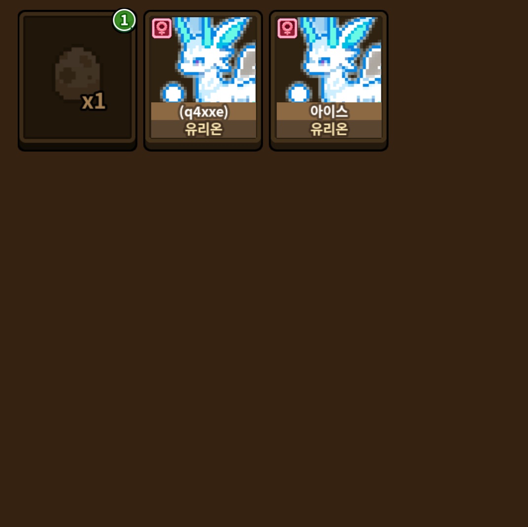 게임 시작한지 얼마 안돼서 용들 중에 종류가 겹치는 애들이 6쌍 뿐인데 그 중 5쌍이 같은 성별이라 교배를 할 수가 없네요ㅋㅋ.. 얘들아 베리스 힘들다 협조 좀 해주라…ㅠㅠ