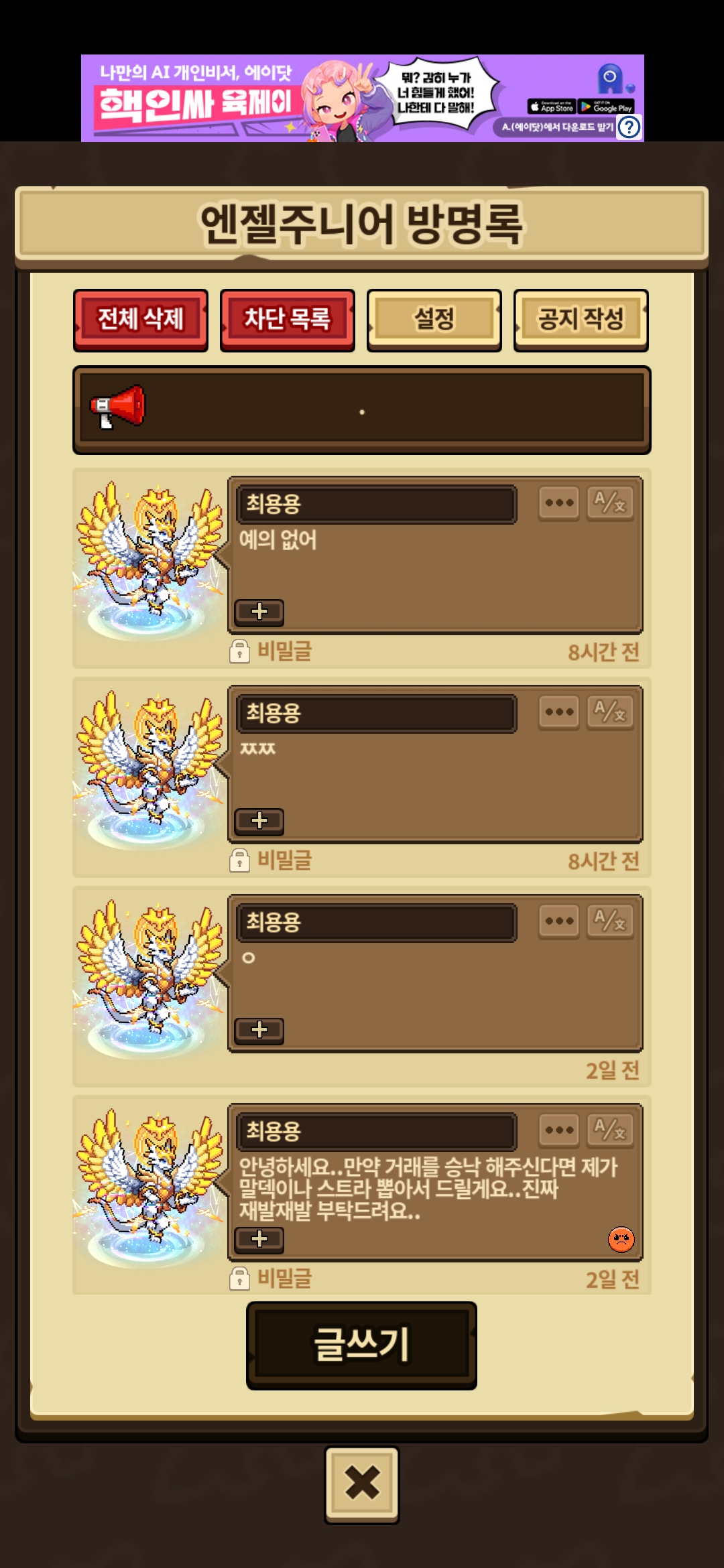 자유게시판 용용이 긁? 엔젤주니어 2024-06-11 07:28 200 5 공유 공유 URL 복사 페이스북 왓츠앱 카카오톡 라인 레딧 닫기 공유 3 0 댓글 5 삭제 이미지첨부 0/3000 등록