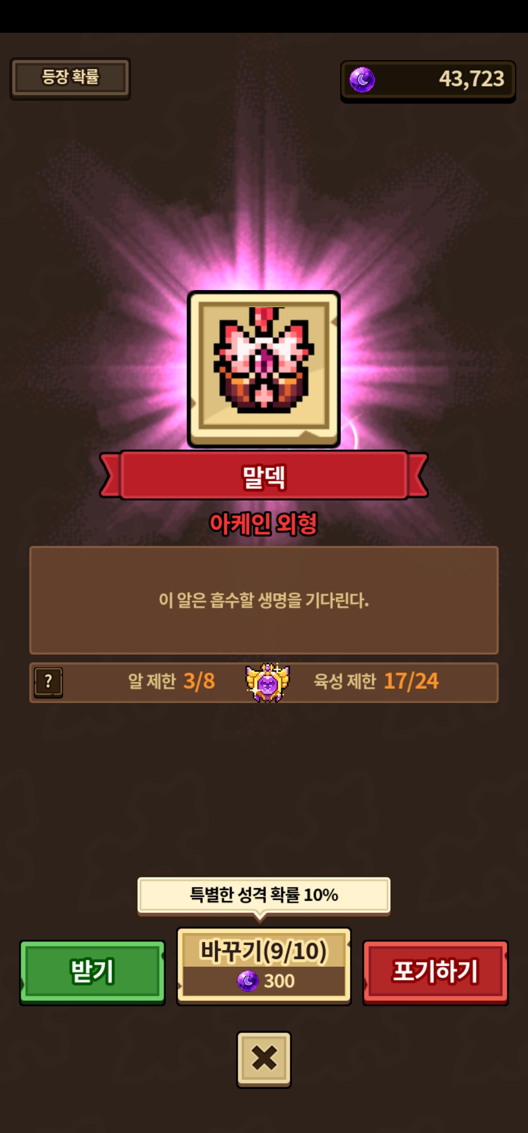 이제 아케인 외형 최소 14마리만 더 얻으면 순5 올 비밀족보 피데스 자체족보 제작이 가능해지겠네요… 성별억까 만나면 필요한 수 늘어날 예정이니 그저 비명만 지르고 말겠지만요. ㅠ