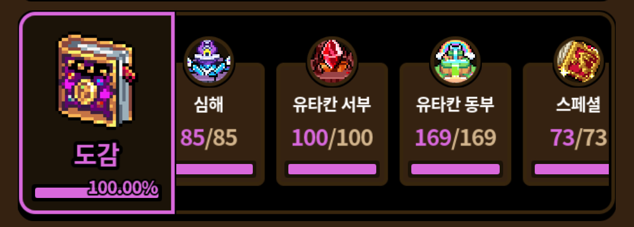 단순 수치상 100프로가 아니고 고앙, 하뽕큐, 페르시온 외형 등등 퍼센테이지에 포함되지않는 용들까지 전부 다 완료했습니다..