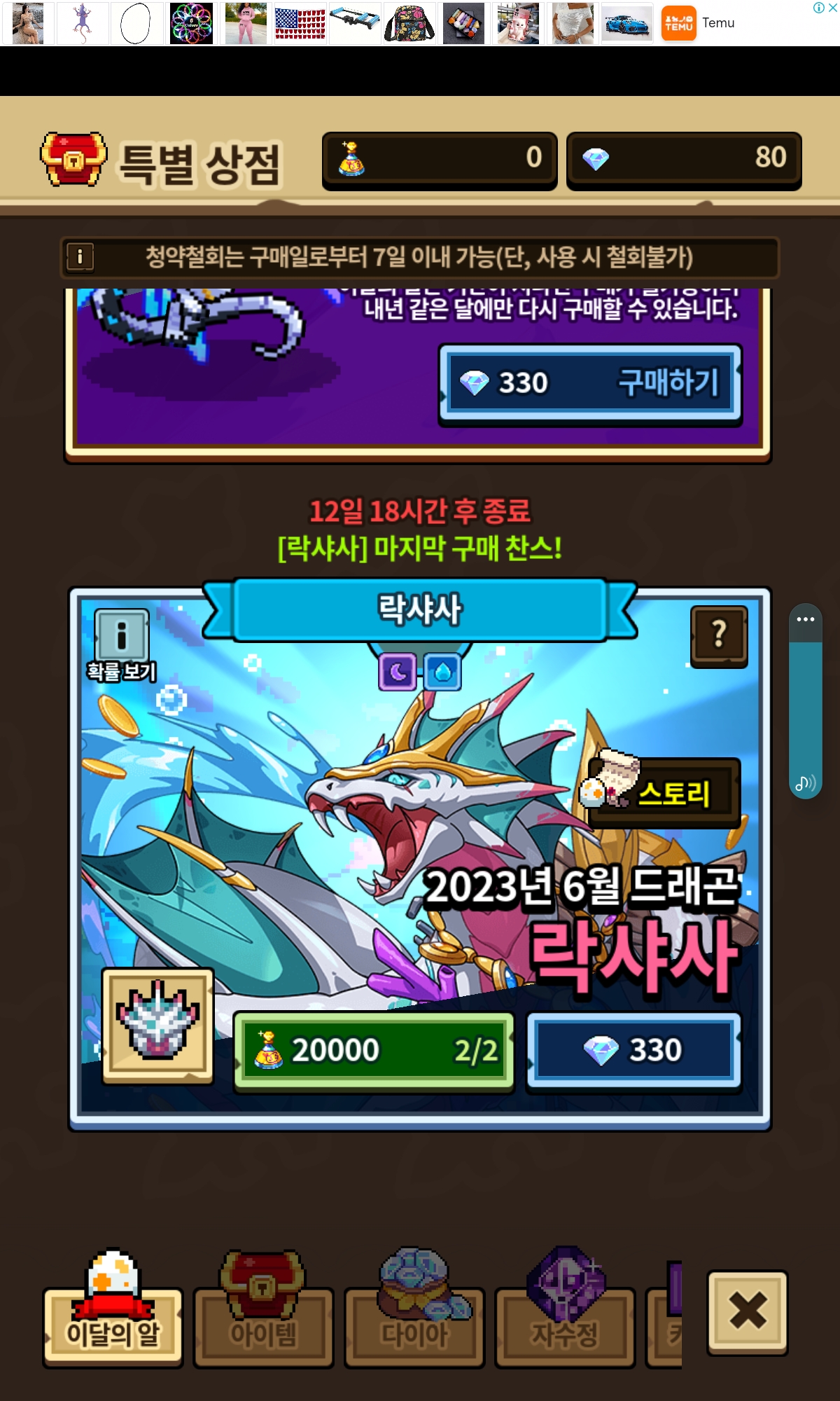 4390다이아 써서 6마리 얻으니 이렇게뜨네요.. 벌써 마지막?