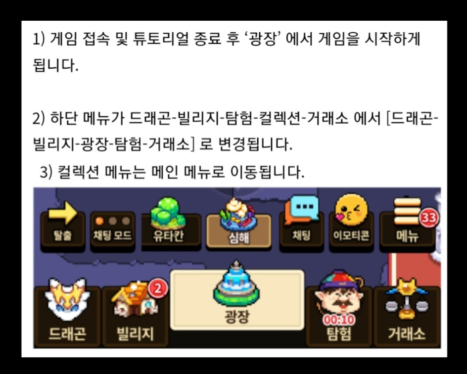 정말 다행이도 이 건의사항은 순순히 들어줘서, 이젠 광장에서의 교류가 다시 많아진 수 있을 것으로 보인다. 업데이트 이후로 그동안 광장을 가려면 무조건 탐험 맵을 거쳐야만 들어갈 수 있었는데, 이젠 전처럼 보다 자유롭게 동굴과 광장, 탐험 지역을 욌다갔다 할 수 있다.