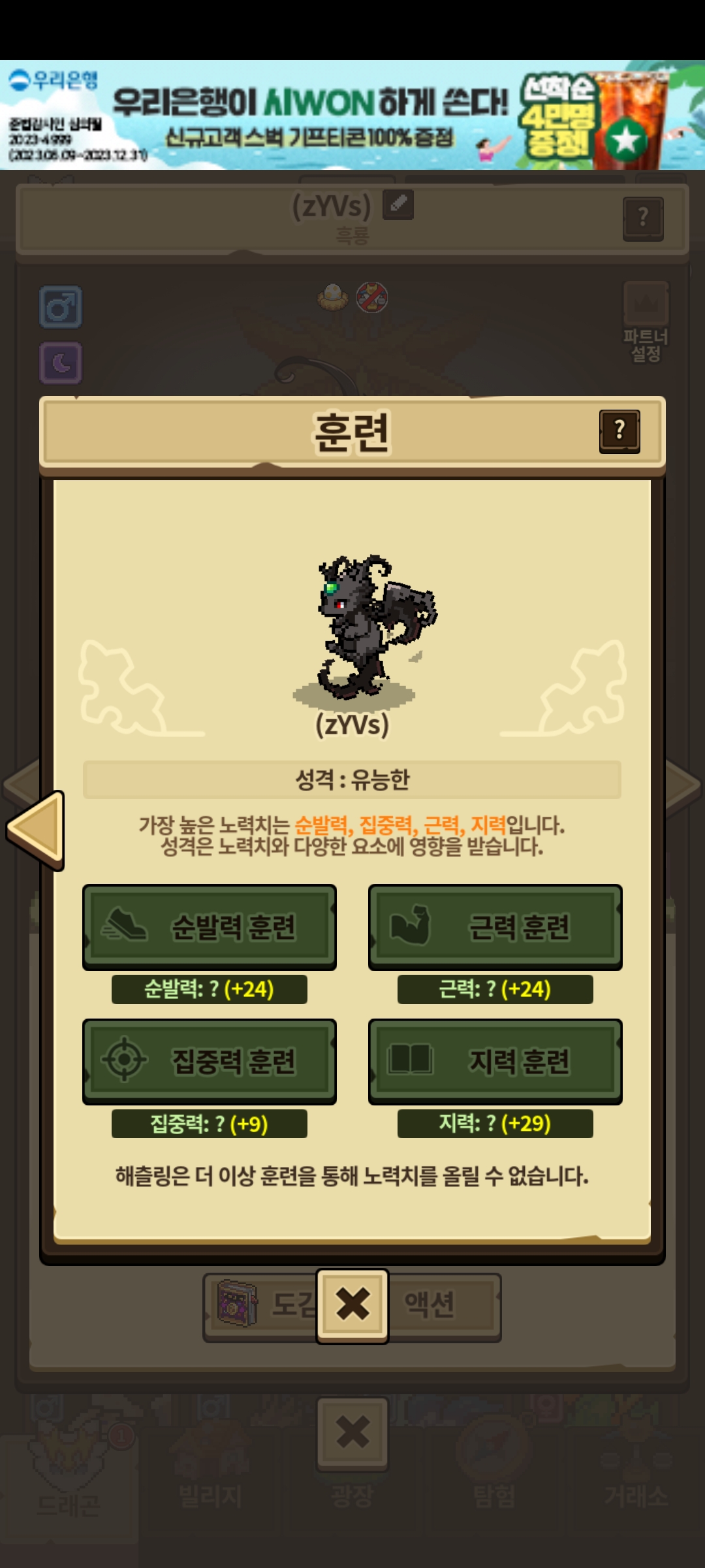 영자님이 준 훈련 시간 초기화 아이템 써서 만든 첫 유능한 흑룡