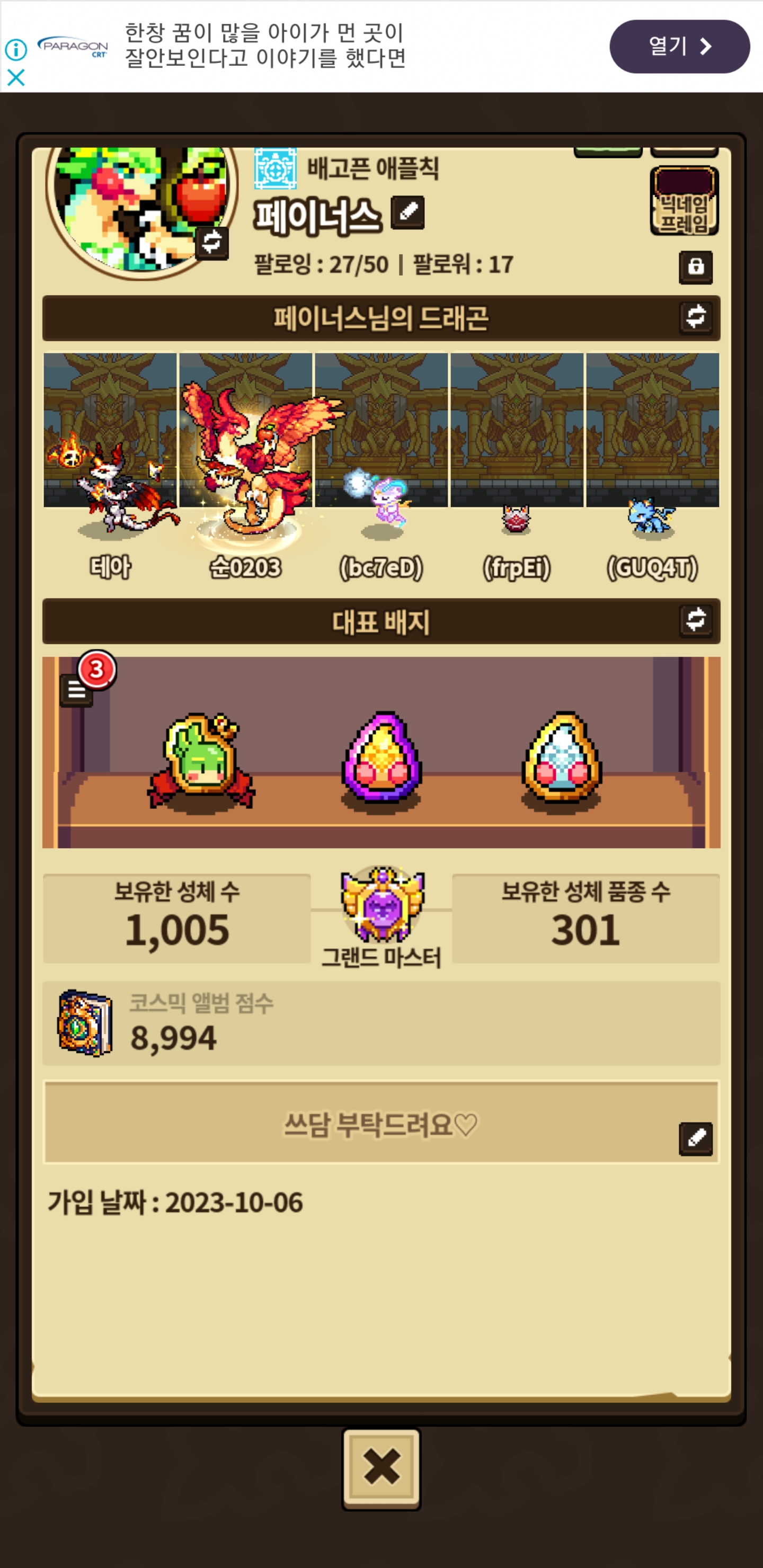 자유게시판 레벨업 페이너스 2024-06-19 14:04 124 2 공유 공유 URL 복사 페이스북 왓츠앱 카카오톡 라인 레딧 닫기 공유 그랜드 마스터 달성 4 0 댓글 2 삭제 이미지첨부 0/3000 등록