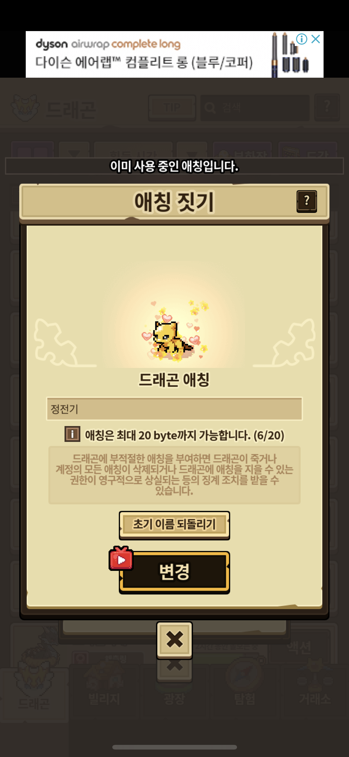 아니 이거 애칭 주는거 중복이 안되나 보네요?
