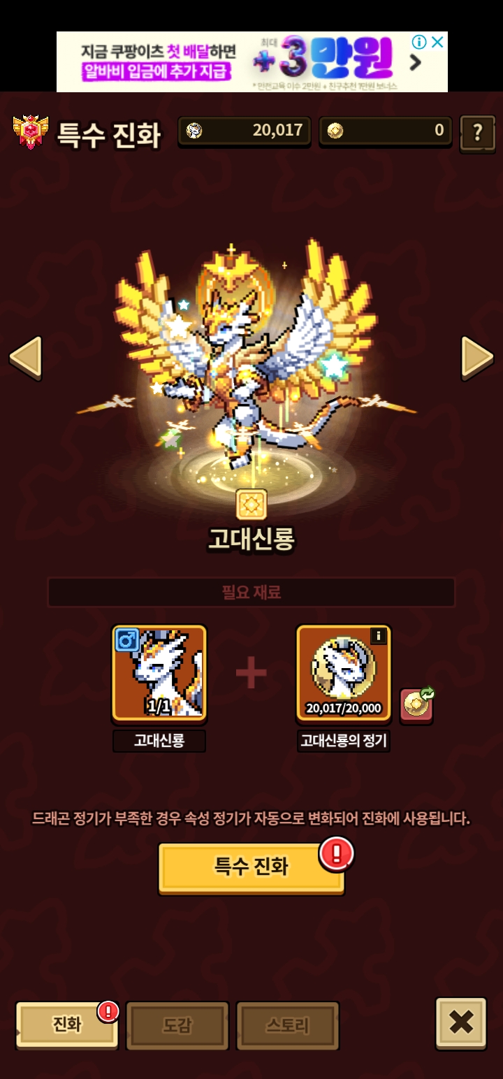 엔젤 두마리 특진 할때 얘는 1마리도 진화 못했다는..