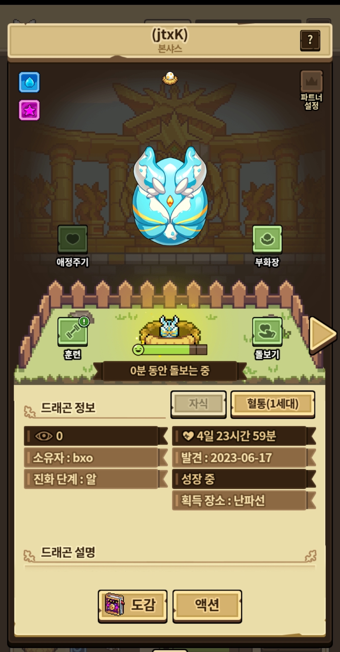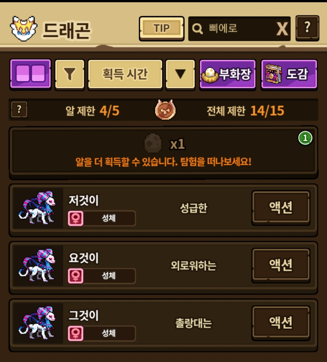 거래소에서 이미 암컷 데려오기는 했지만 이왕 직접 탐험으로 짝 맞춰주고 싶어서 열심히 돌았는데 한번도 못 먹었었음… ꒰ ⸝⸝ɞ̴̶̷ ·̮ ɞ̴̶̷⸝⸝꒱