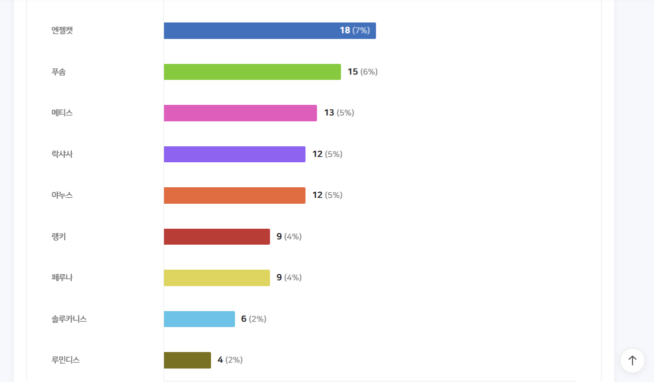 2위 심포니아(30표), 3위 클라비스(28표) 순으로 1위랑 표차이가 1~3표정도 차이가 났습니다.