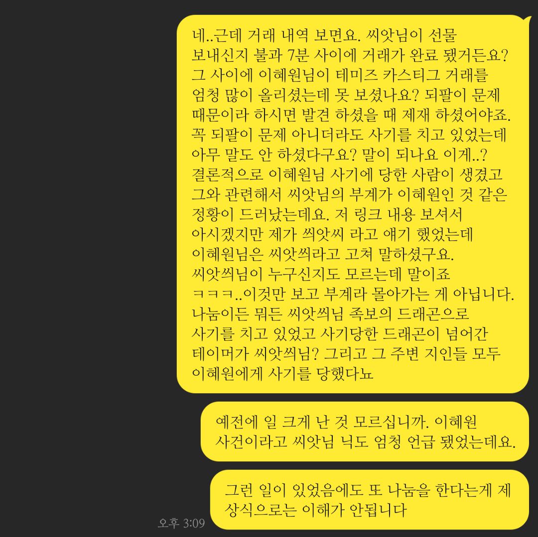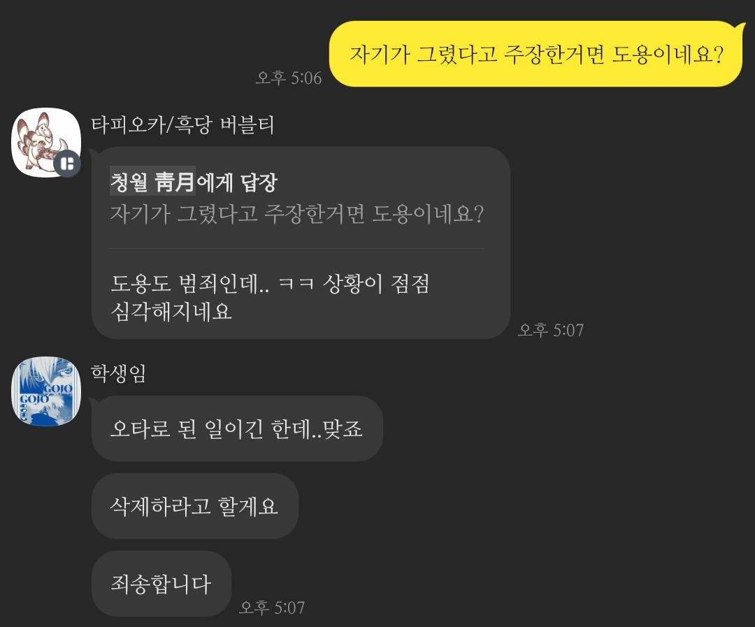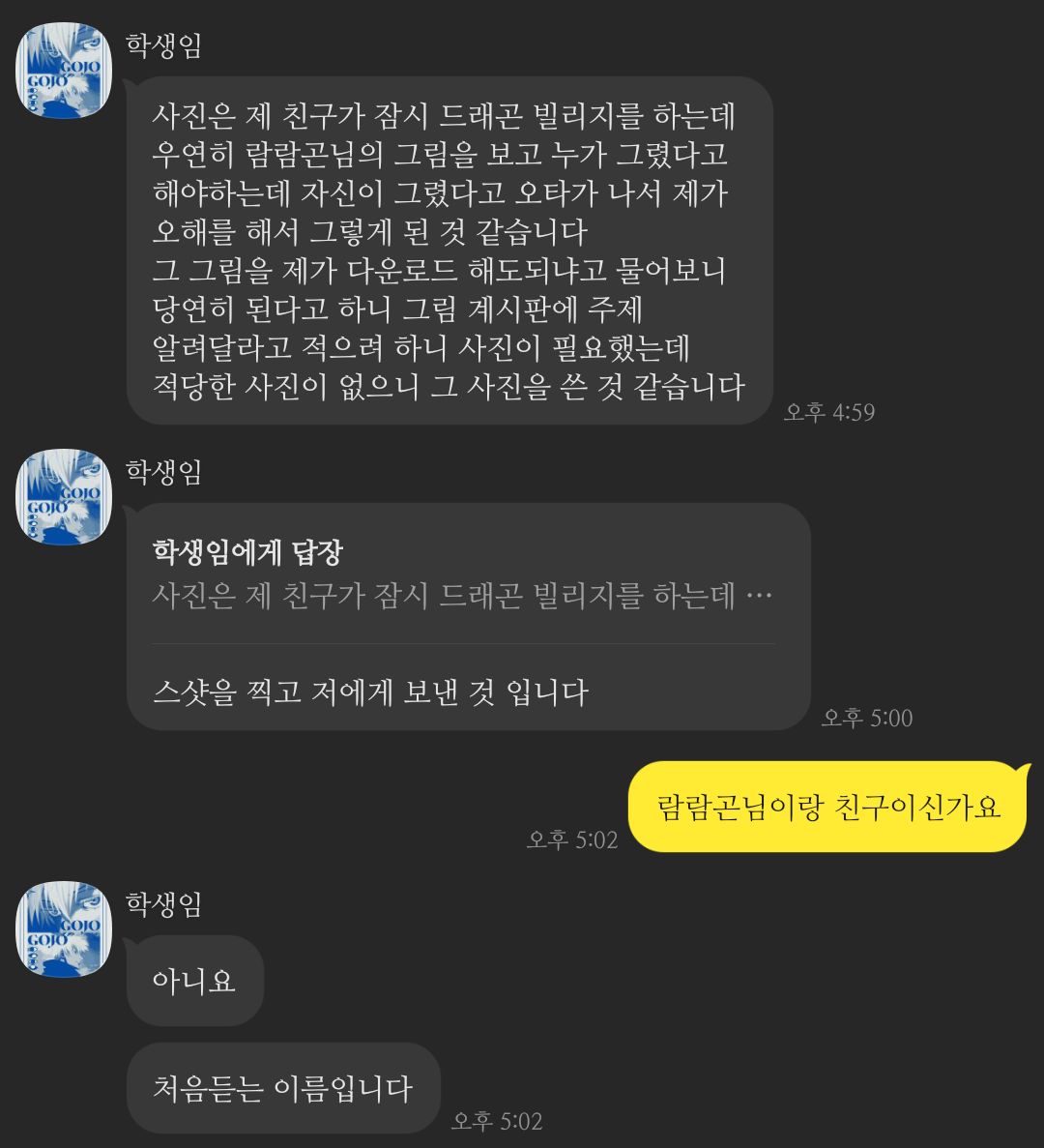 학생임 친구가 람람곤 그림 도용 → 학생임이 그걸 커뮤에 올림 → 람람곤으로 오해 받음