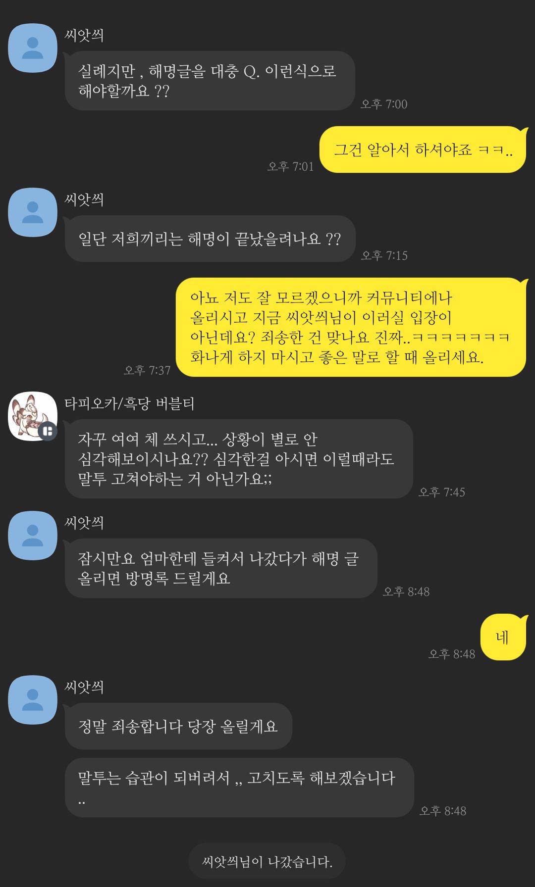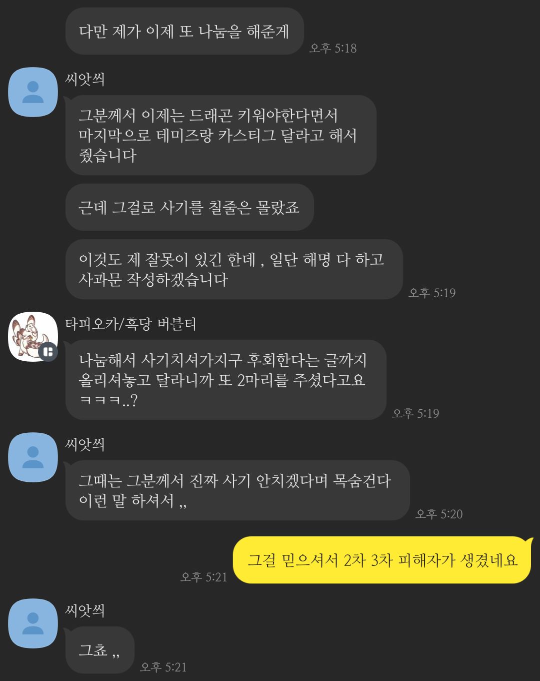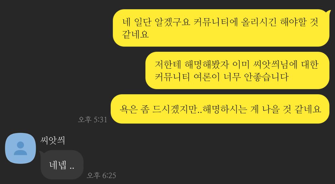 학생임 친구가 람람곤 그림 도용 → 학생임이 그걸 커뮤에 올림 → 람람곤으로 오해 받음