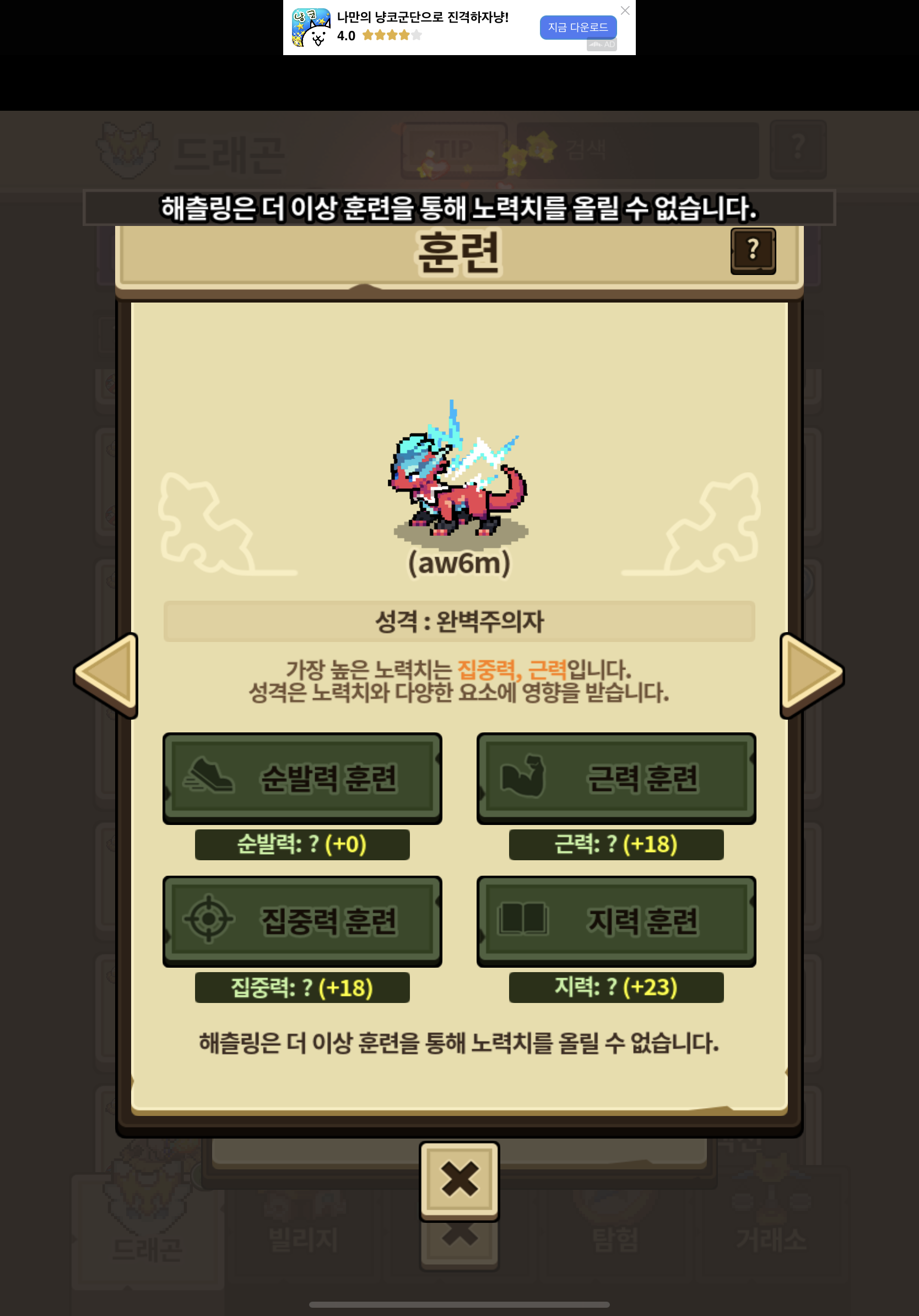 거래소에서 분양받은 아이 유능작 하다가 말았길래 마저 하려다가 실패해서 그냥 키우지 머 하고 냅뒀는데 다시 보니까 완주자가… 왜…?