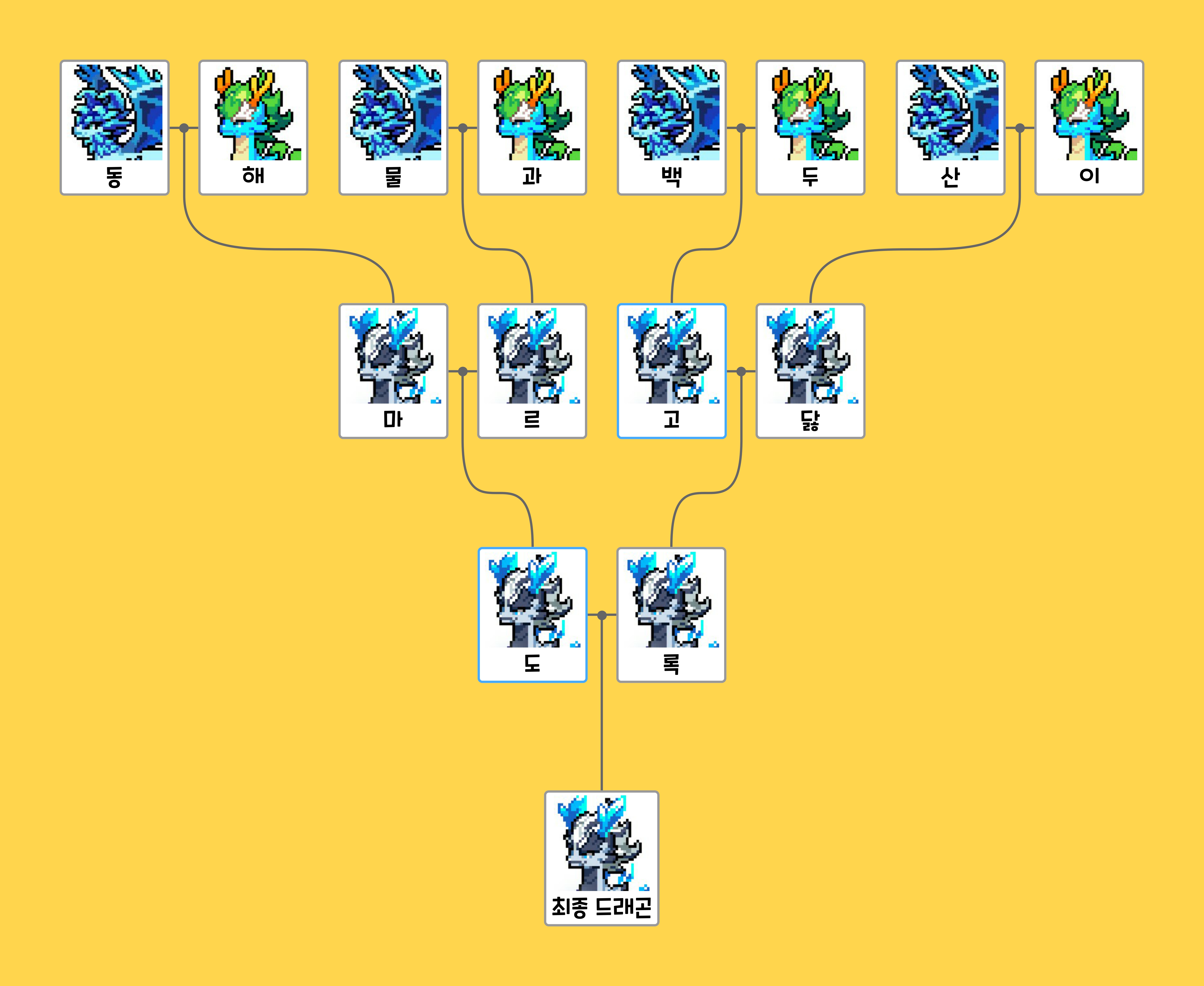 최종 족보의 모습은 다음과 같이 계획되었고, 8월 14일 까지 완성할 예정입니다. ( 최종드래곤은 이름 상관 x )